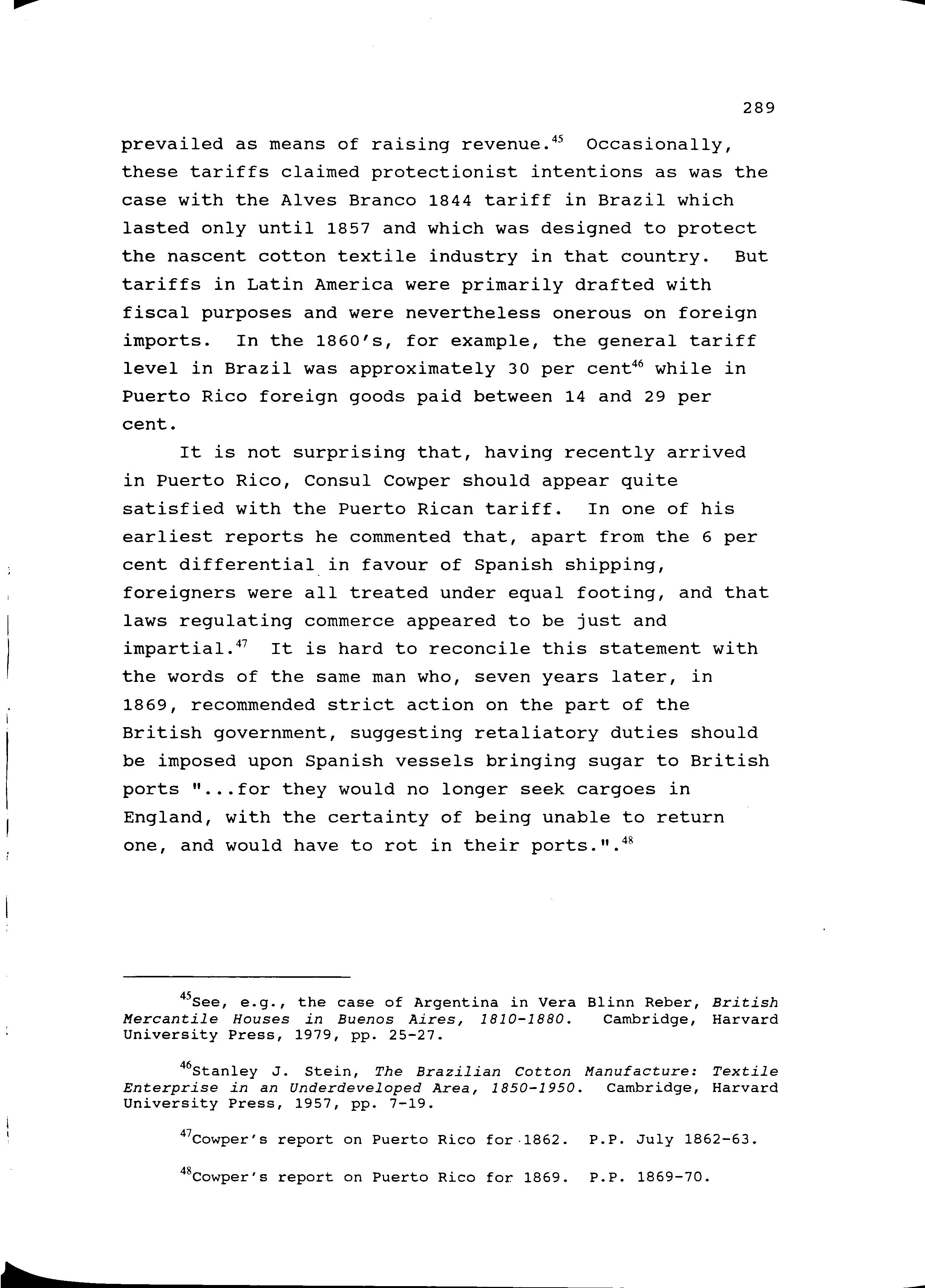 The answer is that it obviously wasn't. On the contrary, during the nineteenth century, Puerto Rico failed to attract the avid attention which Cuba received from the United States, and even from its own metropolis, Spain. The smaller island was therefore allowed to develop a multilateral trade, certainly influenced by Spanish colonial policy and by the proximity of the United States, but nevertheless of a varied nature and a cosmopolitan outlook in which Britain's participation was naturally dynamic; so dynamic, in fact, that in 1869, the normally phlegmatic English consul at Puerto Rico, Henry Augustus Cowper, was compelled to describe the island a possessing "an immense British commerce".7