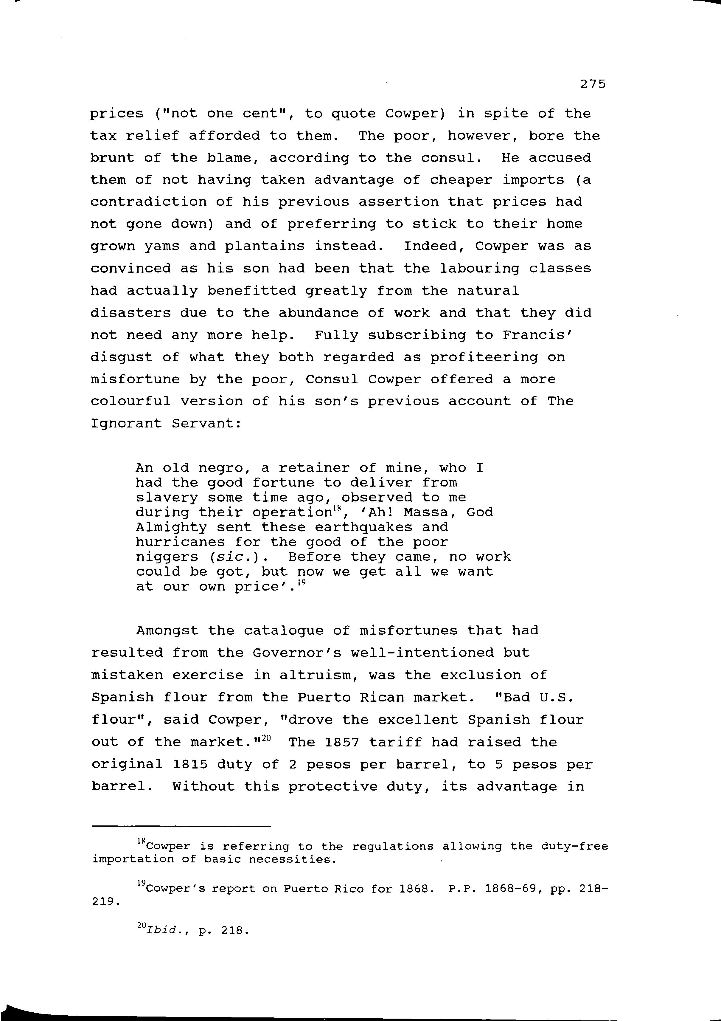 Report by Mr. Consul Cowper on the Trade and Commerce of the Island of Porto Rico during the year 1868. Parliamentary Papers (henceforth "P.P.") 1868-69 [4110-I-VI], LIX.l, LX.l, 65, 103, 171, 279, 361, p. 215. (My emphasis.)