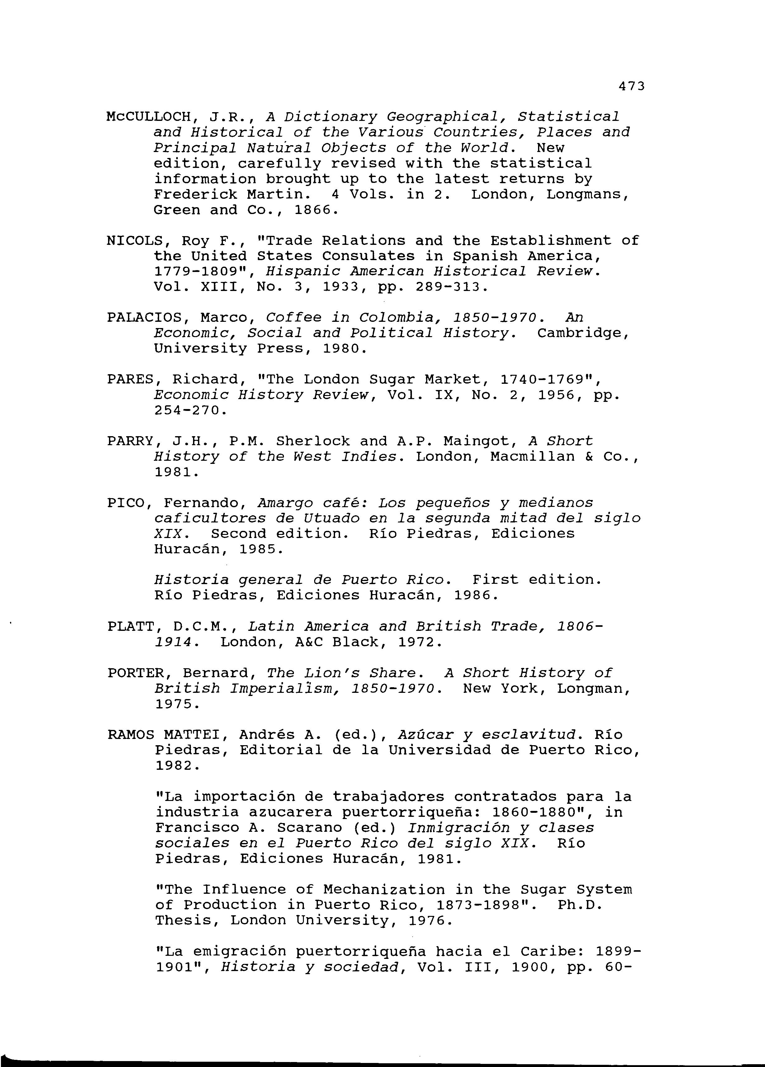 BERGAD, Laird W., "Agrarian History of Puerto Rico, 18701930", Latin American Research Review, Vol XIII, No. 3, 1978, pp. 63-94.
