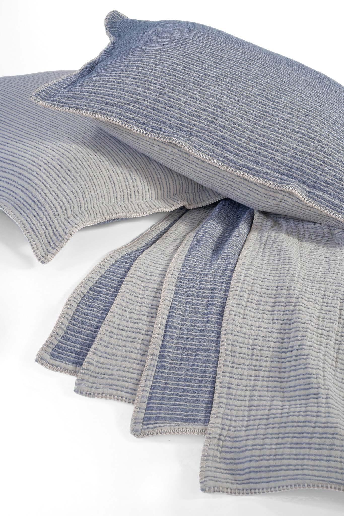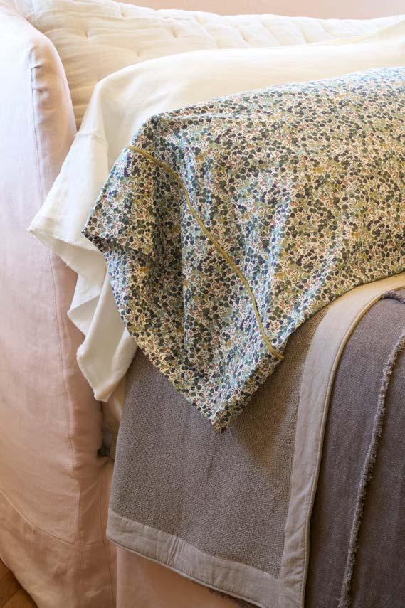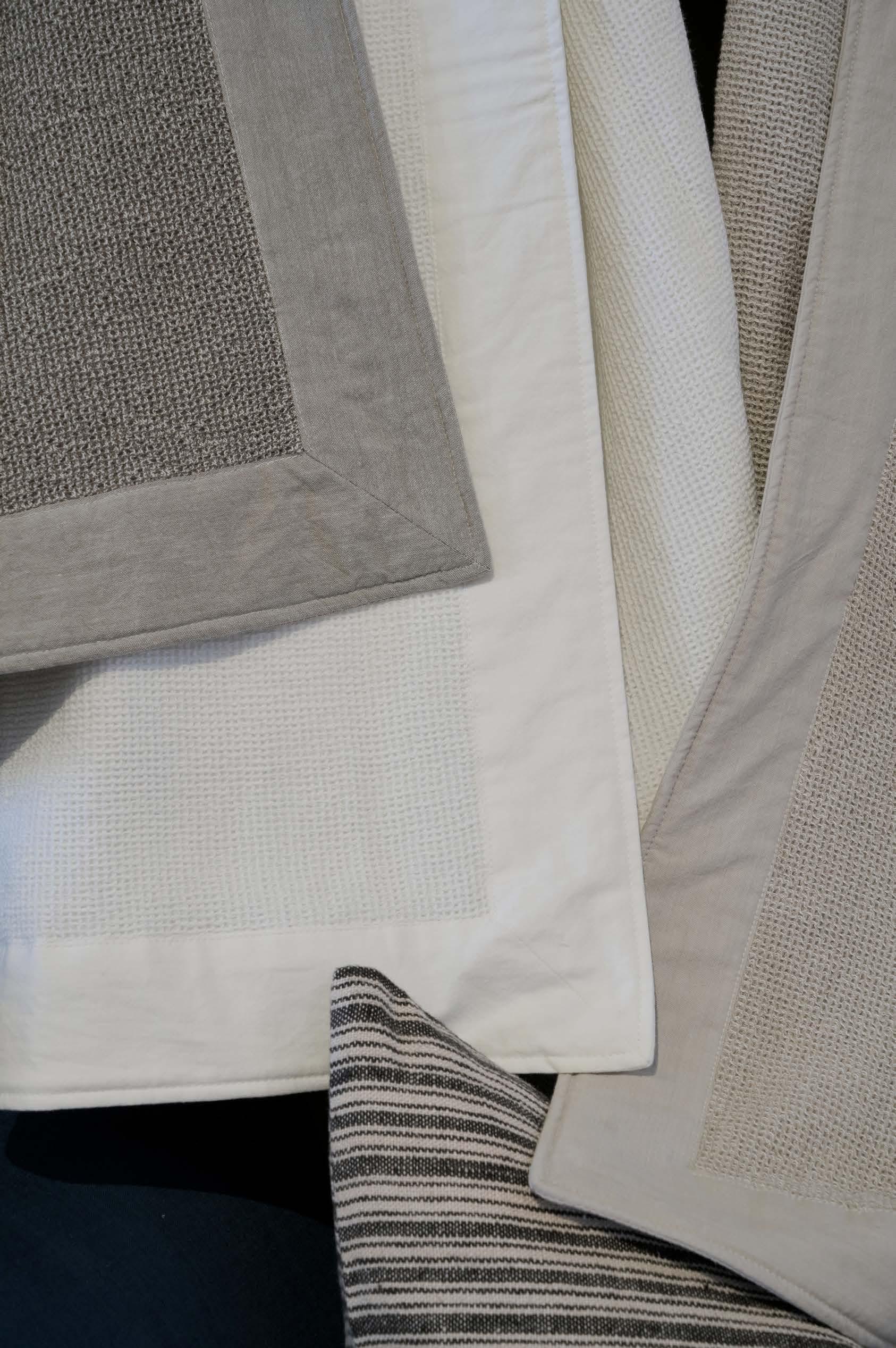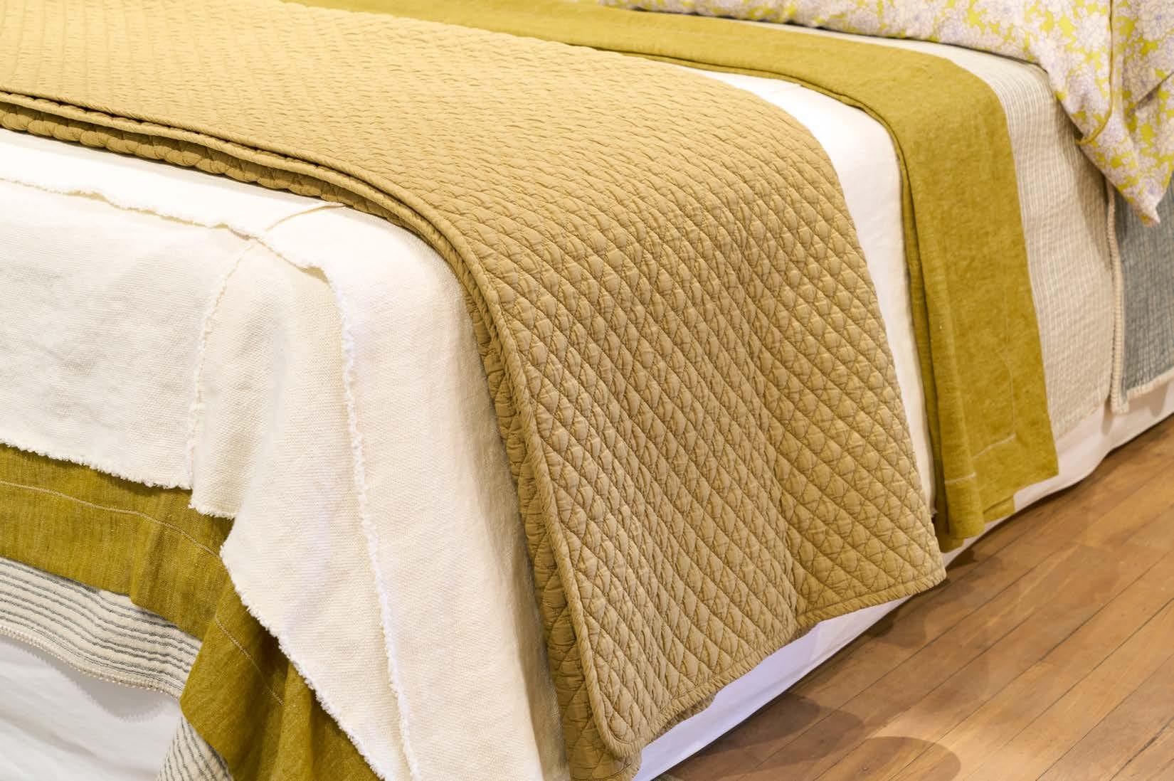 FEATURED: Twine Coverlet, Lizzy Blanket in Delph Blue, and Tilly Coverlet in Oatmeal.