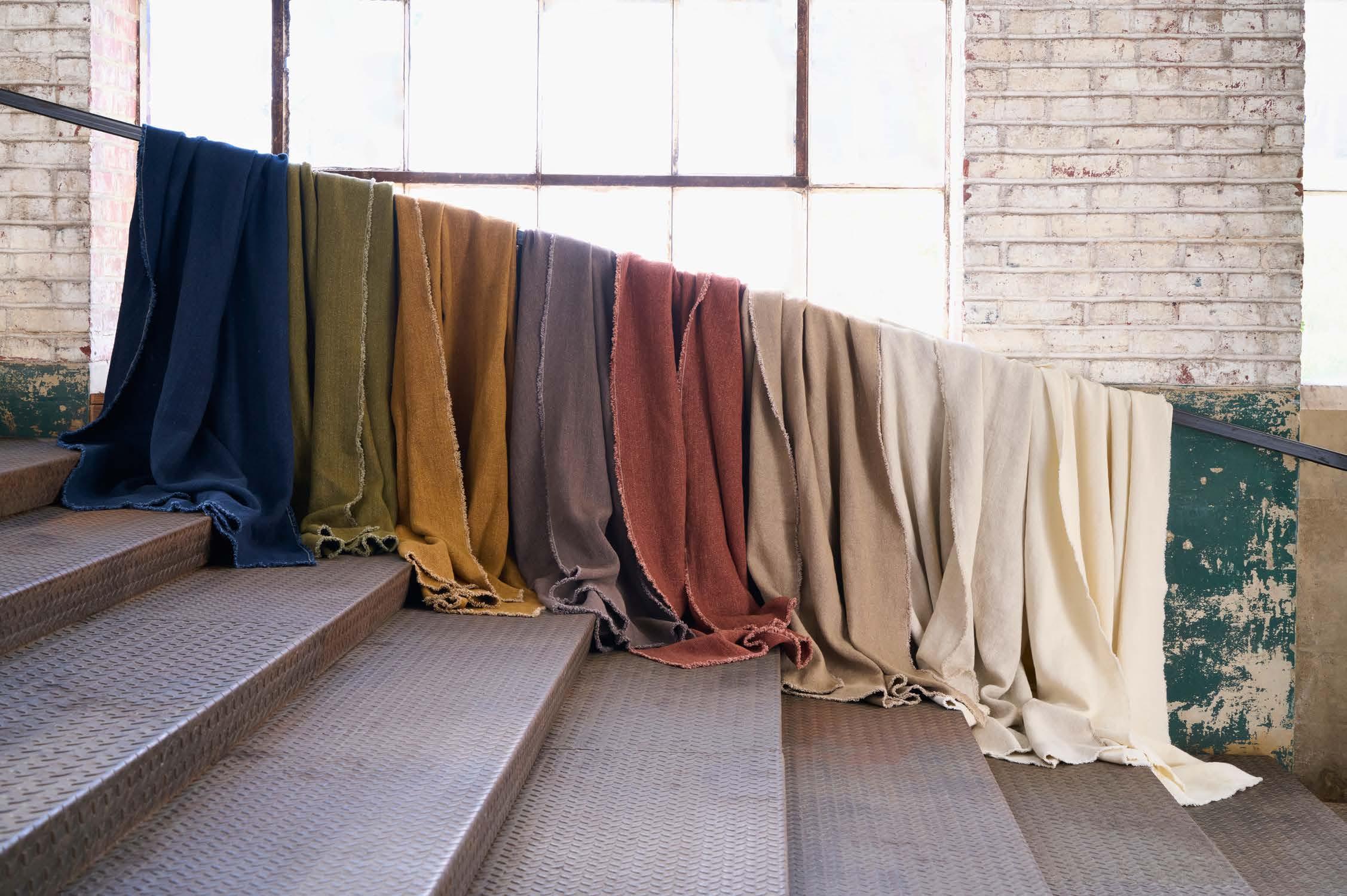 REED: 100%DYEDSTONEWASHEDFLAXHEFTYLINEN.730GSM. AVAILABLECOLORS:SNOWFALL OATMEAL FLAX PLATINUM HAY CLOVE MIDNIGHT PINE