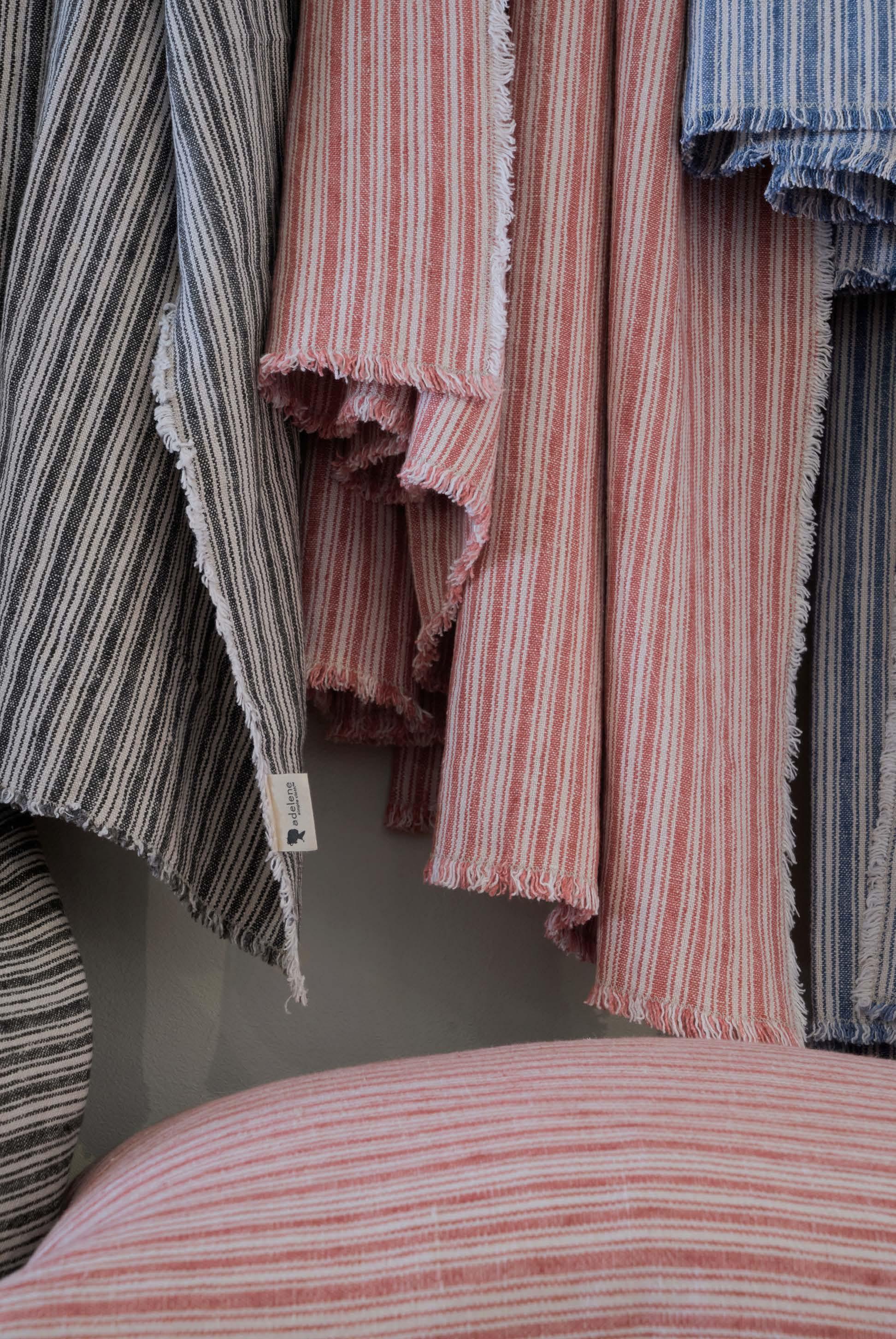 OLLIE: 100%STONEWASHEDFLAXLINENTICKINGSTRIPE.410GSM. AVAILABLECOLORS:DELPHINUM HAVANA IRONWARE