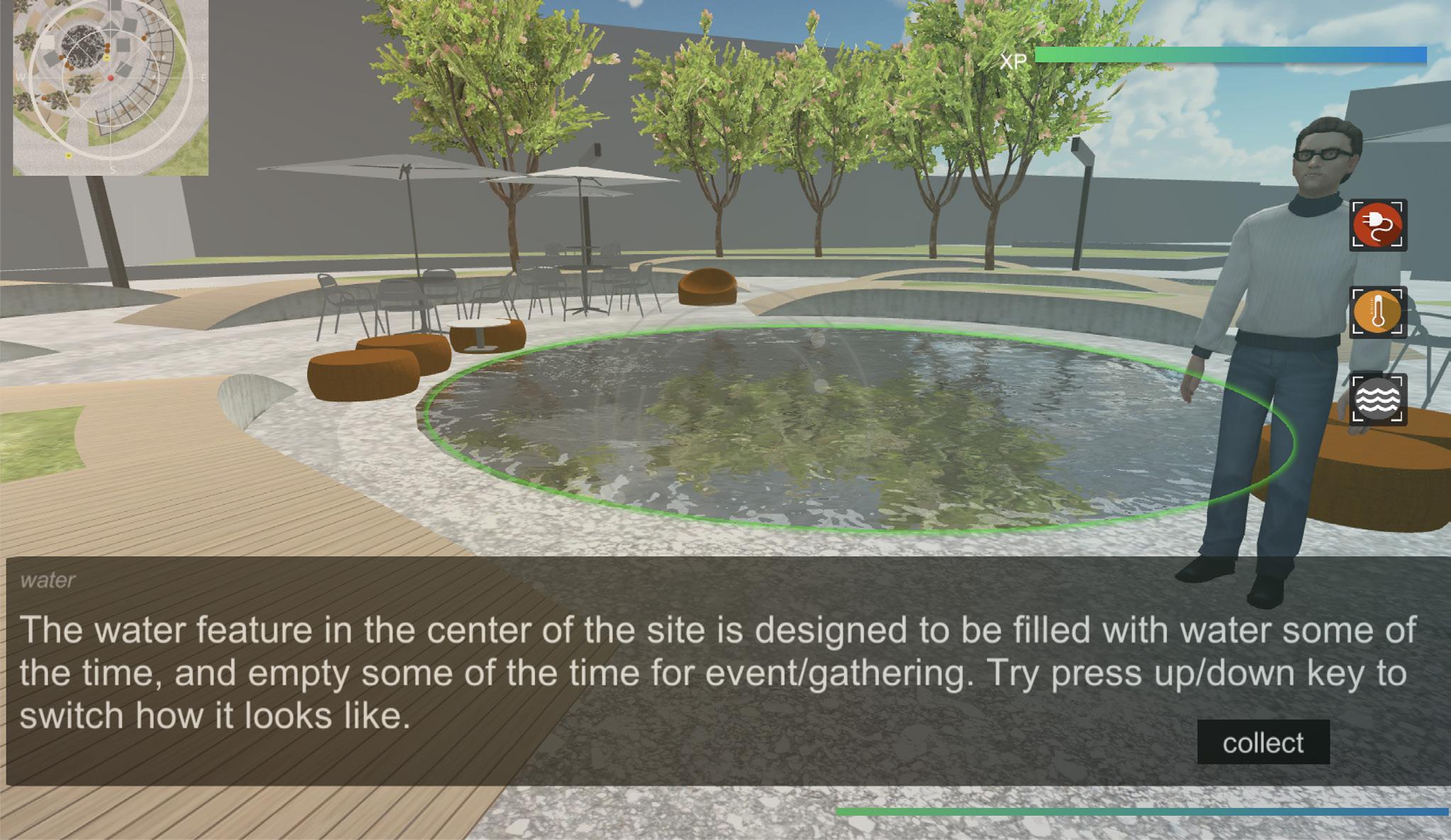 Although game as a visualization tool may not as immersive as VR, based on cost and efficiency for large groups of participants, this interactive tool gives more perspective. By embedding questions in the game, it is technically possible to collect players in-game answers in a data base and count for the result, which can be a reference for future decision making. It will be more fruitful to inform design decisions if future users participate.
