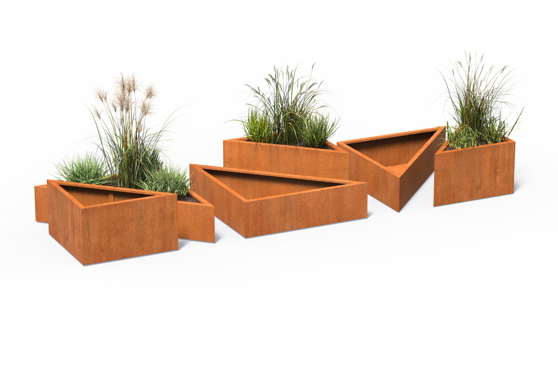 TRIANGLE to - jak sama nazwa wskazuje - trójkątna donica. Dzięki specyficznemu geometrycznemu kształtowi doskonale nadaje się do wypełniania niewygodnych przestrzeni w ogrodzie w różnych zabawnych kompozycjach. Lub po prostu do wypełnienia wewnętrznego narożnika zielenią.