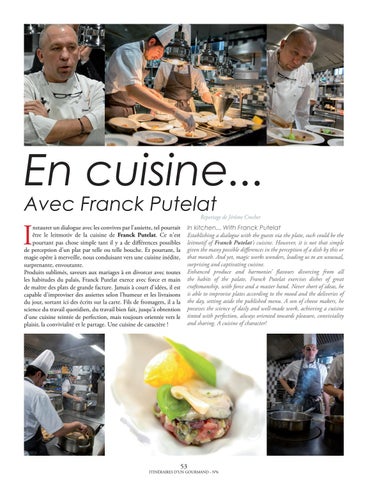 In kitchen... With Franck Putelat Establishing a dialogue with the guests via the plate, such could be the leitmotif of Franck Putelat’s cuisine. However, it is not that simple given the many possible differences in the perception of a dish by this or that mouth. And yet, magic works wonders, leading us to an unusual, surprising and captivating cuisine. Enhanced produce and harmonies’ flavours divorcing from all the habits of the palate, Franck Putelat exercises dishes of great craftsmanship, with force and a master hand. Never short of ideas, he is able to improvise plates according to the mood and the deliveries of the day, setting aside the published menu. A son of cheese makers, he possesses the science of daily and well-made work, achieving a cuisine tinted with perfection, always oriented towards pleasure, conviviality and sharing. A cuisine of character!