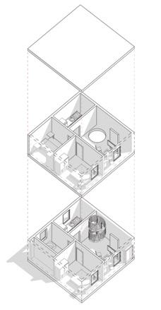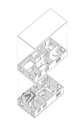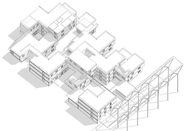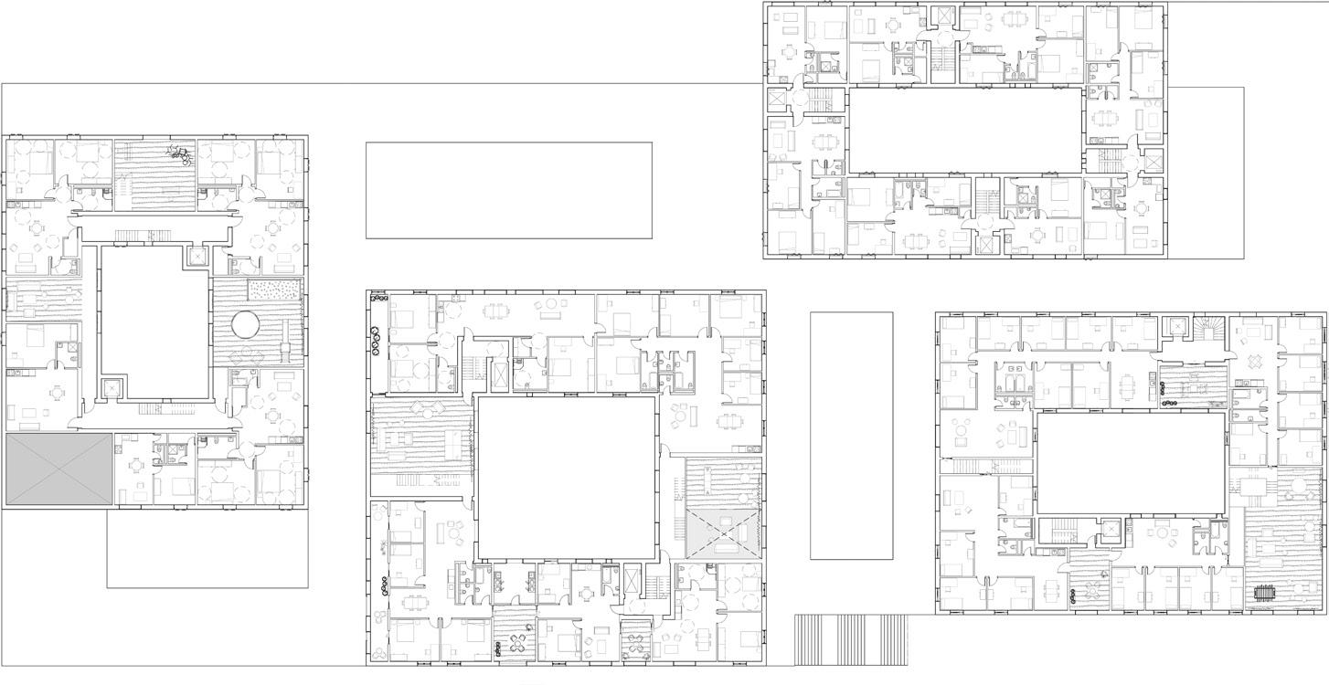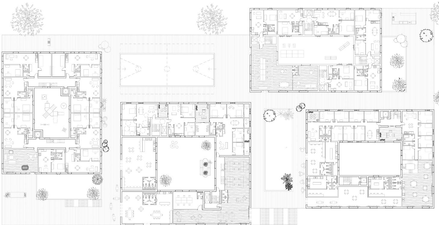 The Single housing offers single rooms for students and young people, and also communal kitchen,communal living rooms and roof garden that connects different users of the building.