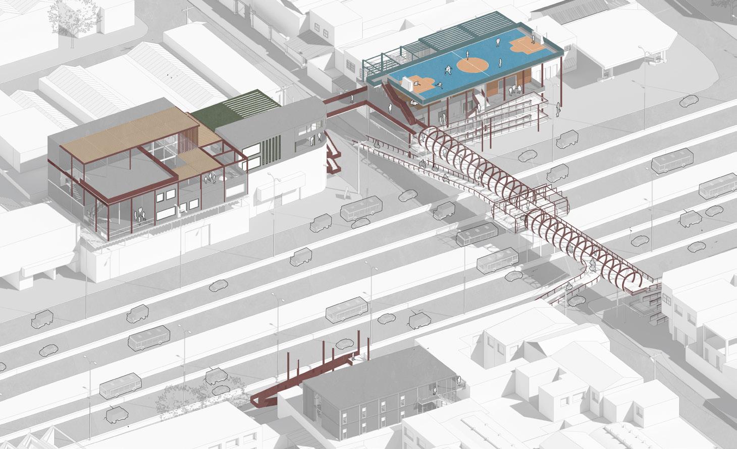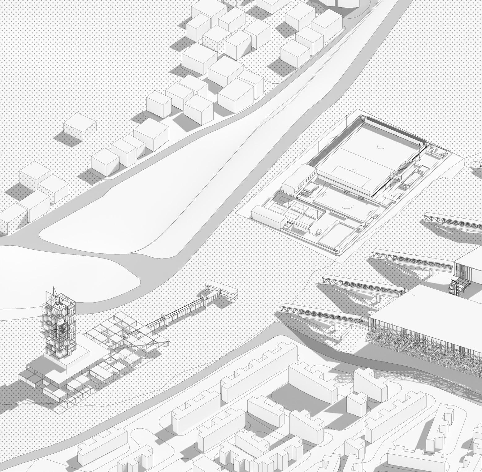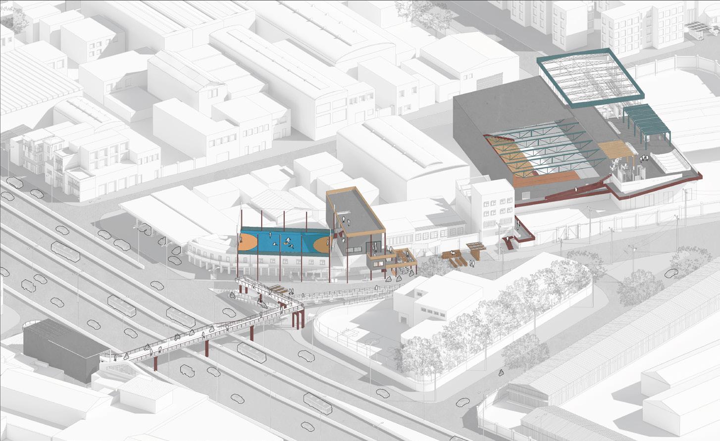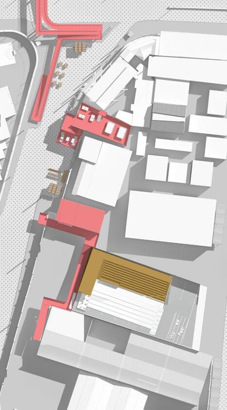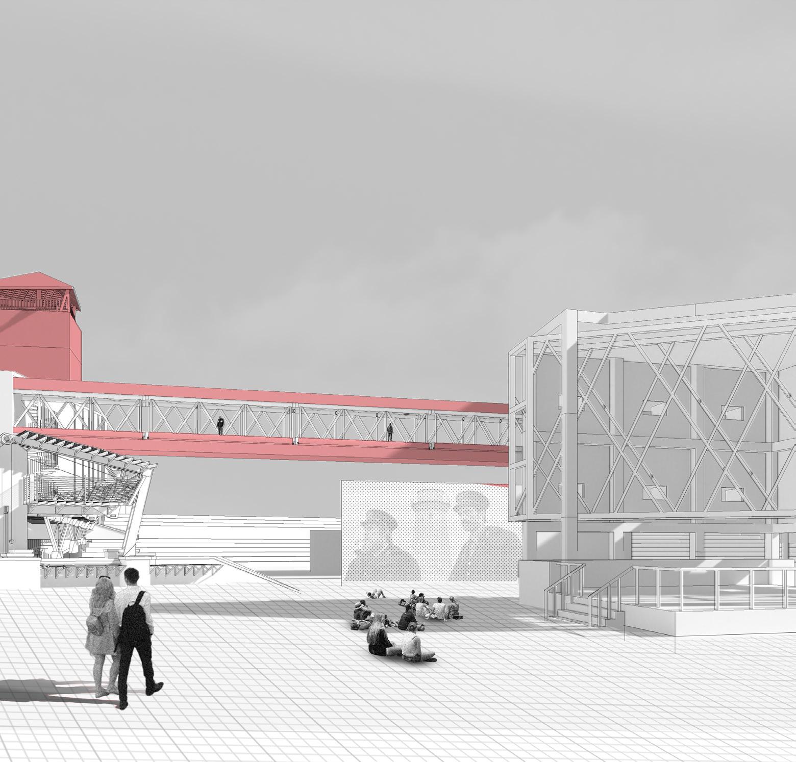Missing functions are added such as a new Cinema which is directly connected to the Social building and the Motostop by the bridge.