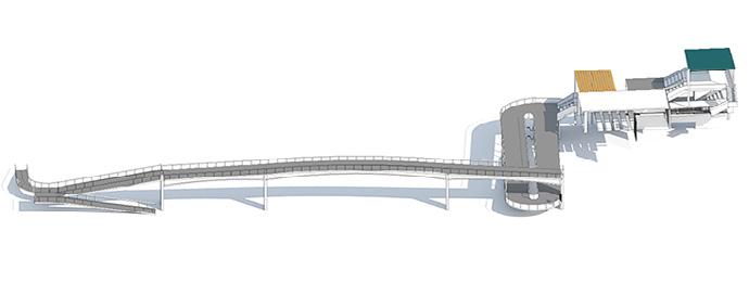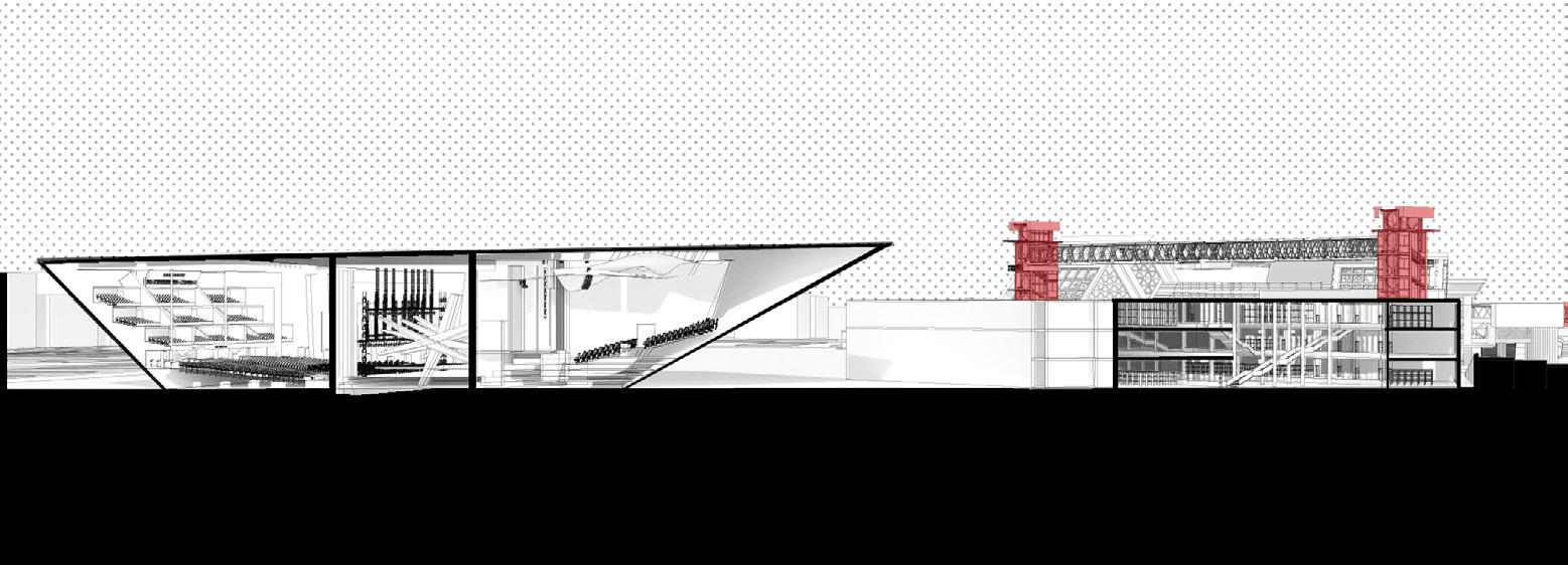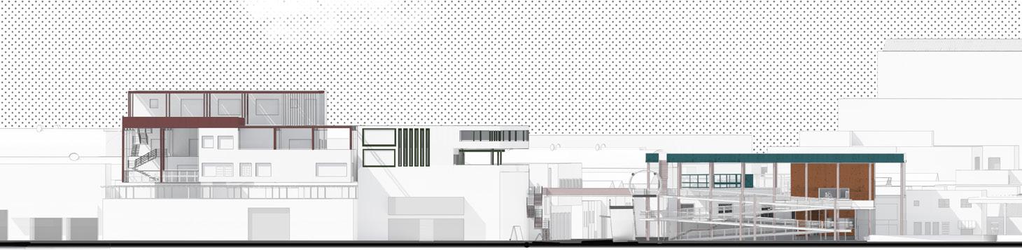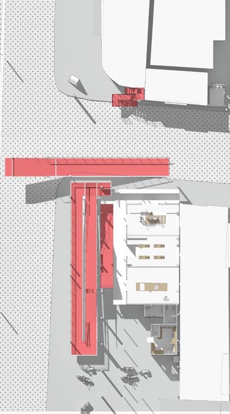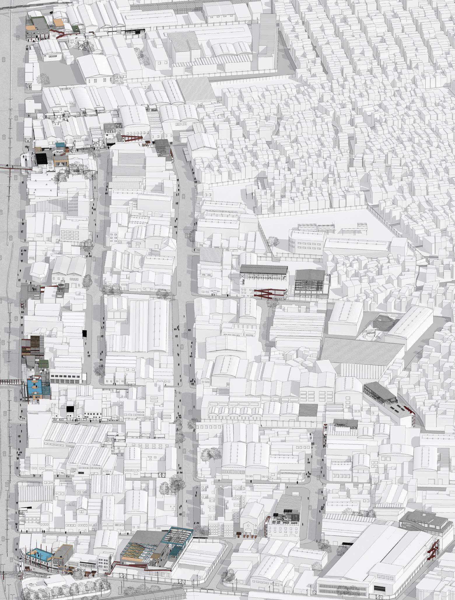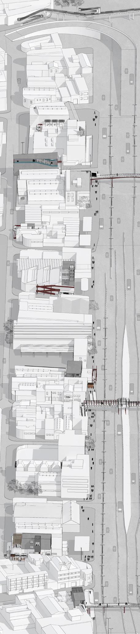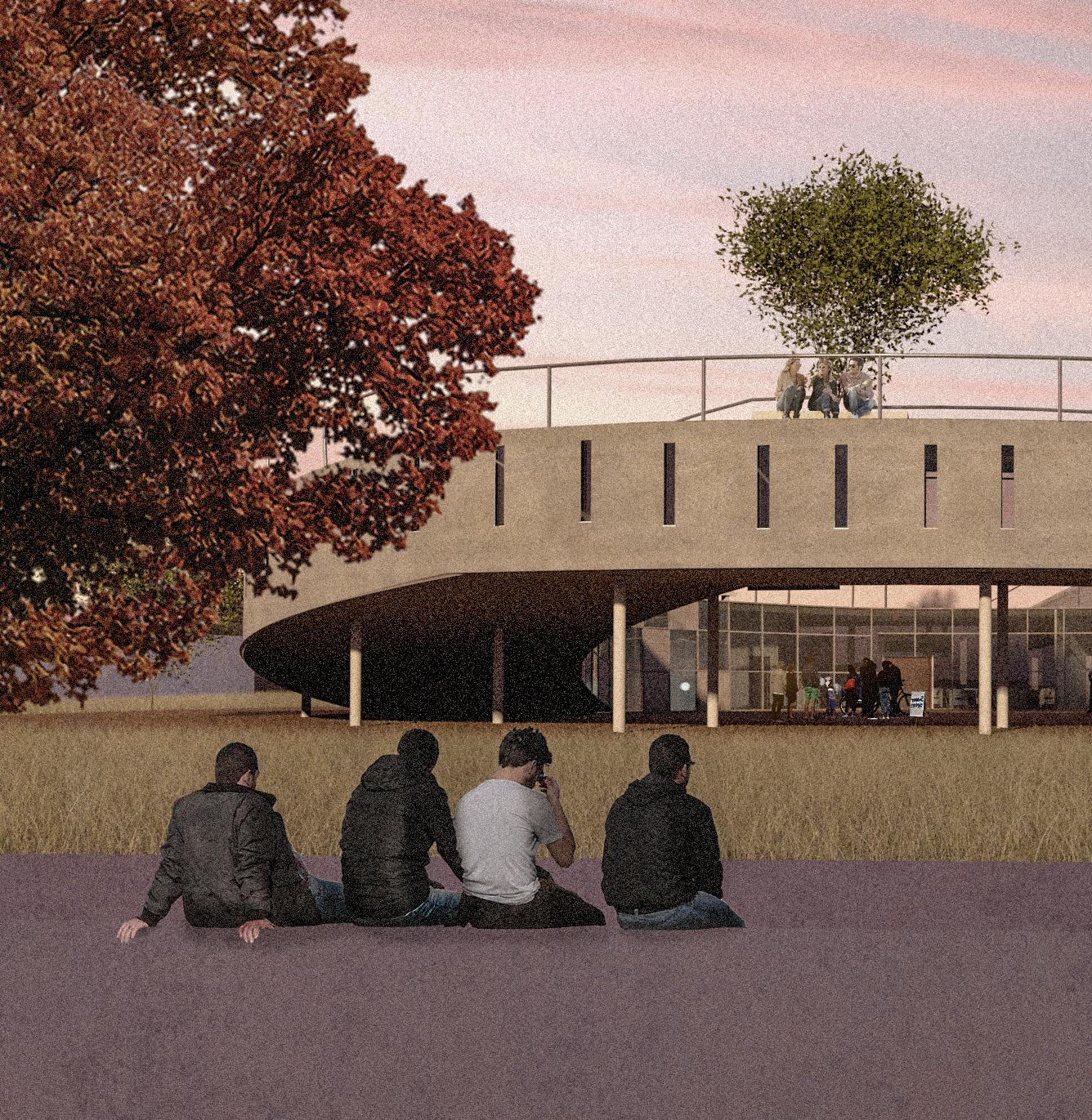 Missing functions are added such as a new Cinema which is directly connected to the Social building and the Motostop by the bridge.