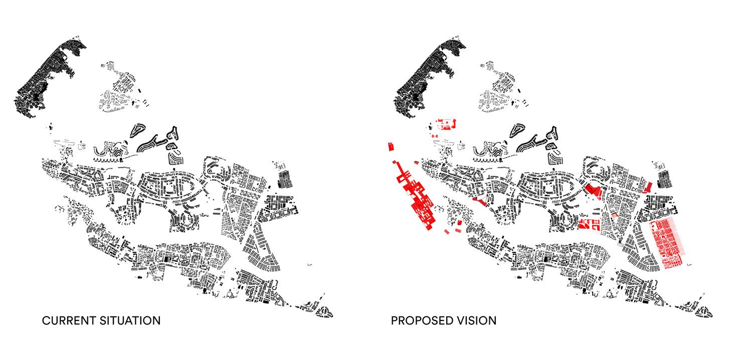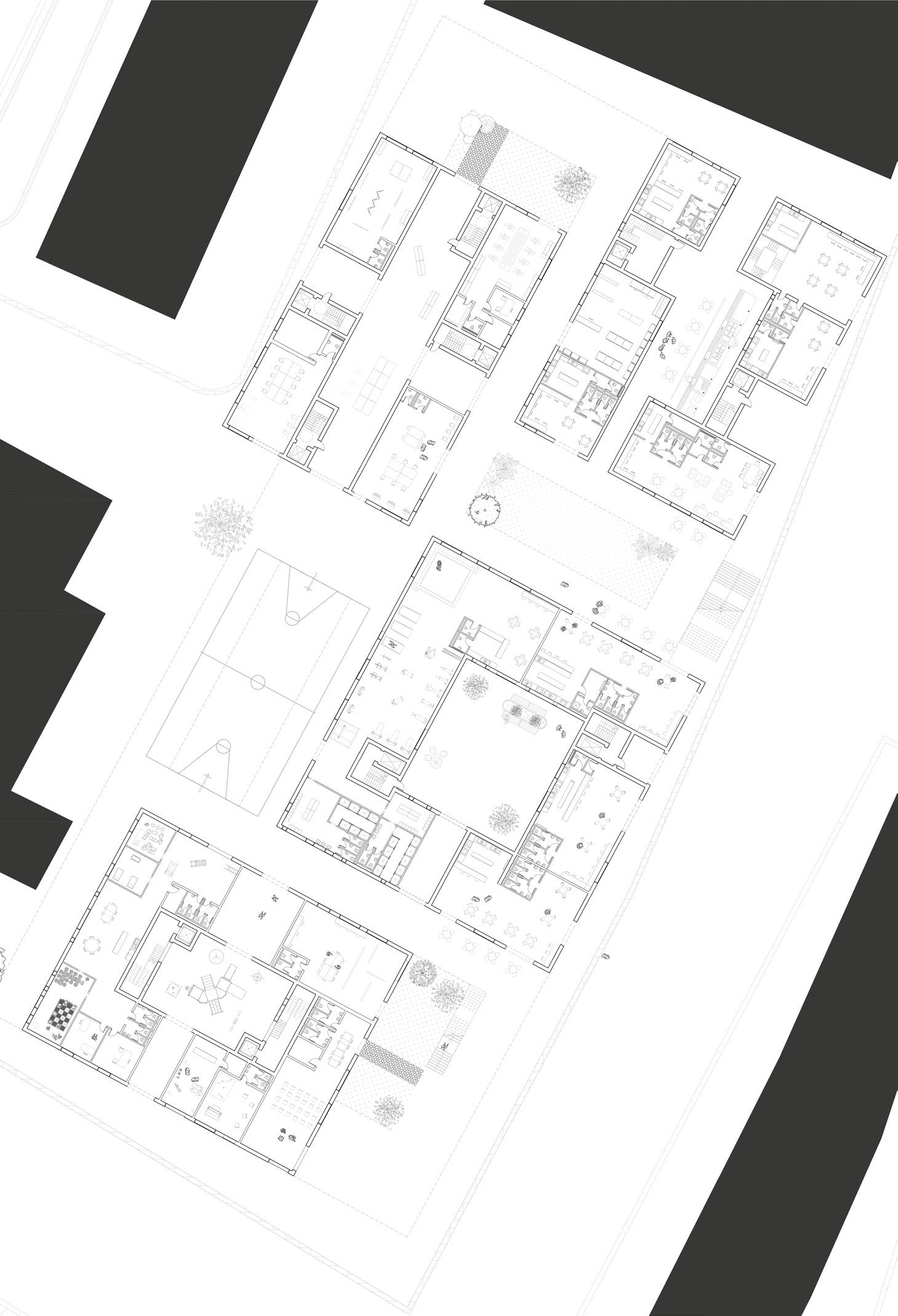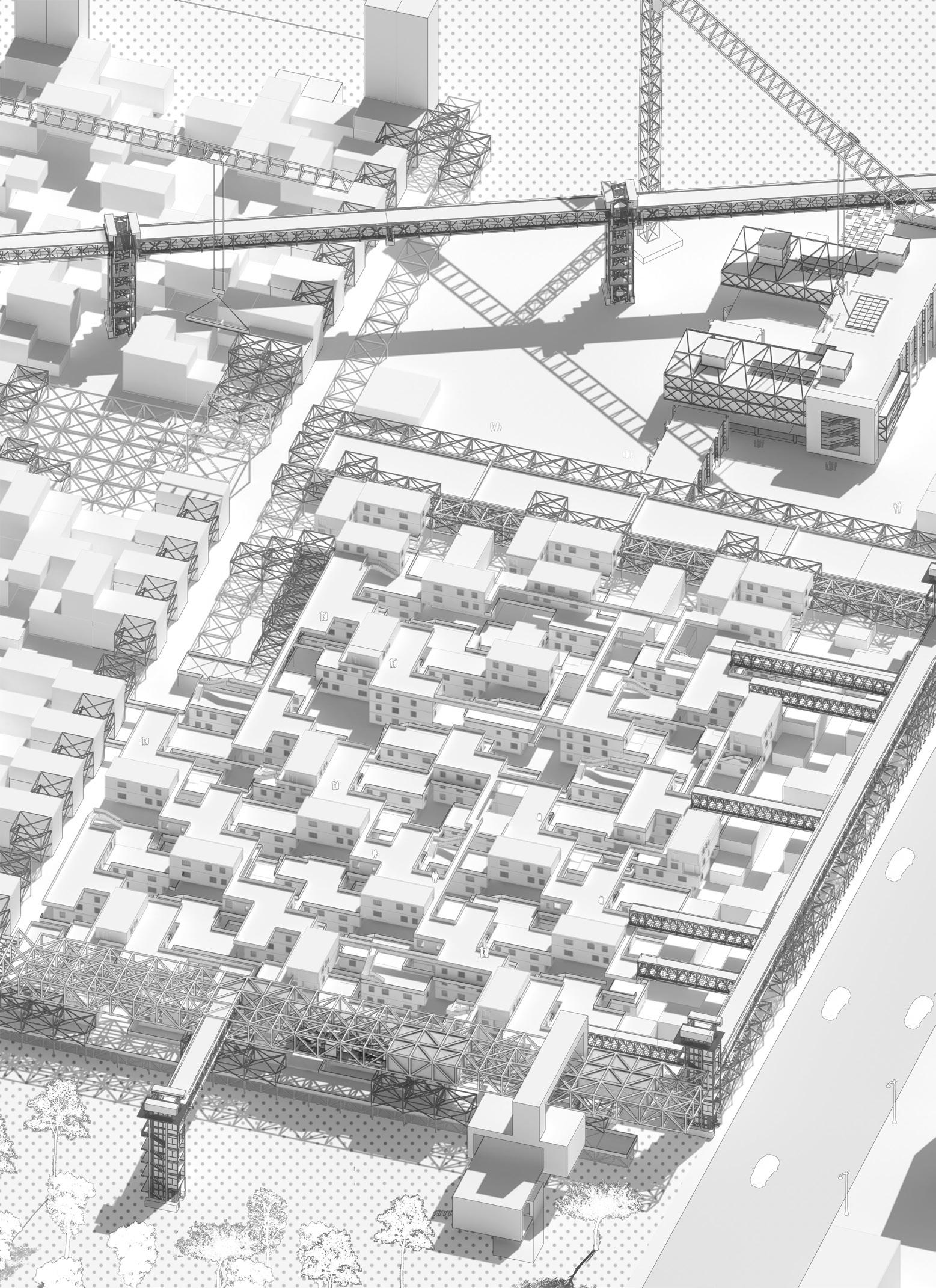 THE PROPOSALS INTRODUCE COMPACT MULTIFUNCTIONAL STRUCTURES WITH TWO MAIN TYPES. THE MULTIFUNCTIONAL PASSAGE BUILDINGS AT PRIME LOCATIONS WITH NUMBERS OF PEOPLE PASSING BY AND THROUGH, SET AS STACKED PUBLIC SPACES ALLOWING FOR DIFFERENT ACTIVITIES. THE OTHER TYPE OFFERS SPECIFIC USES TO THE AREA. THE VISITORS WILL FIND NEIGHBORHOOD LIBRARIES, OPEN AIR MOVIE THEATERS, GYMS, POOLS BUT ALSO LARGE SPORT FUNCTIONS, WHICH ALL TOGETHER ADD A NUMBER OF MISSING ACTIVITIES.