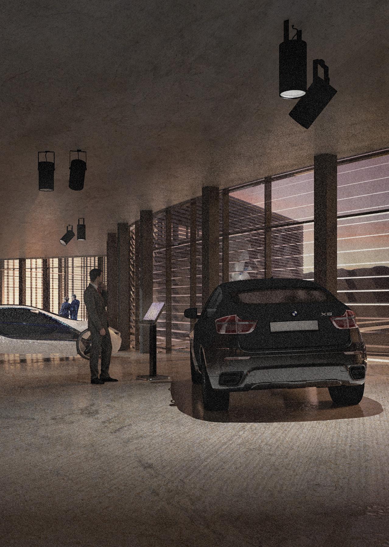 There are two main circulation routes inside the center, one is for the visitors and the other for the cars, with both connected directly to each other.