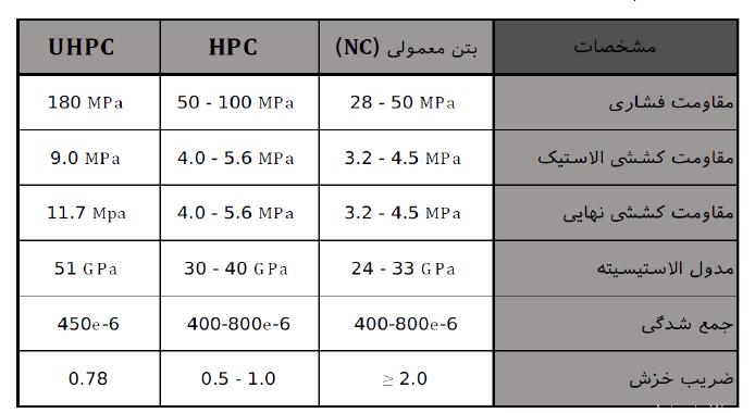 دنمناوت قوف نتب یایازم دامجنا تردق / ندش بوذ رگنل جورخ تردق هبرض ربارب رد تمواقم ؛قارتحا لباق ریغ دنلب یاه نامتخاس یارب شتآ شیامزآ بآ دض و بذاج ریغنییاپ یترارح طاسبنا بیرض دراد ییلااب تمواقم هزرل ربارب رد دوشیم هزاس ماکحتسا و ماود دوبهب ثعاب نتب نیا زا هدافتسا دهدیم شهاک تدش هب ار یرادهگن و ریمعت یاههنیزه . دنکیم رتمک ار یبارخ نازیم ،دراد ار یگتخیسگ مه زا نازیم لقادح نوچ . دهدیم شهاک ار هزاس زا رصنع ره هزادنا و یگدیچیپ . دشخبیم دوبهب ار هزاس یعاجترا تیصاخ شهاک ار هزاس رد اهنوتس و اهریت هزادنا تسلااب نآ یراشف تمواقم نوچ .دهدیم دراد هک ییلااب یریذپفاطعنا تیصاخ تلع هب تسا رتتحار رایسب نآ اب زاس و تخاس . هزاس تخاس تعرس یفرصم داوم شهاک تلع هب دراد یریگمشچ شیازفا و یرادهگن نامز دوشیم مواقم دوز نتب نوچ دباییم شهاک نآ شیاس 04 فیراعت بیاعم و ایازم یگنر فیط تفاب یطیحم تسیز تارثا تاصخشم هسیاقم Uhpc,hpc,nc ییارجا لیتید اب ینیشن مه اه ریالتم اه هنومن