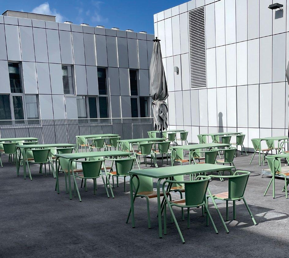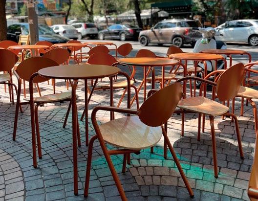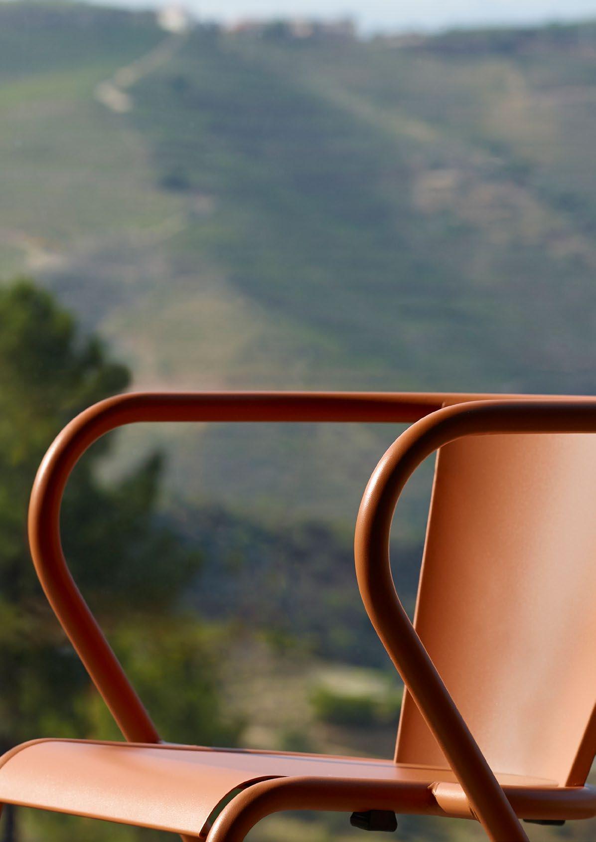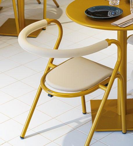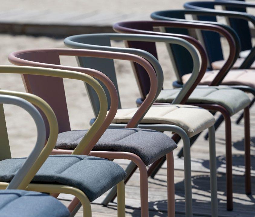 The new metal colors introduce eight fabric options for cushions. Most of the fabrics have undefined colors and create a contrast with the color of the chairs. Furthermore, any cushion (color) can be combined with any chair (color), offering customers endless possibilities to create spaces with unique identities.