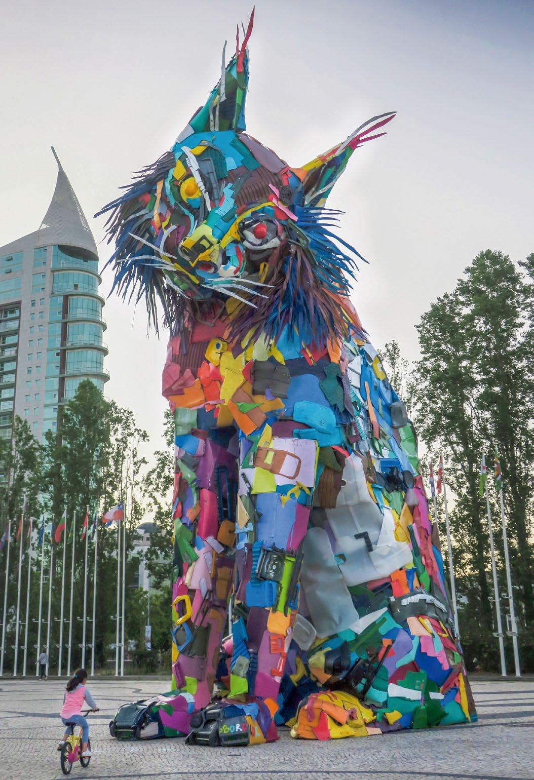 It’s an explosion of color and scale that the artist leaves behind, questioning the materialistic and greedy society that we are all part of. Overproduction and overconsumption of everything result in the production of an unimaginable amount of waste, which the artist believes is responsible for the destruction of our planet. And it is precisely this waste, the unusual raw material that Bordalo II uses in the construction of his pieces, which leave no one indifferent and, above all, aim to be a vehicle for a universal manifesto.