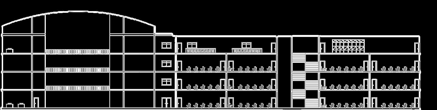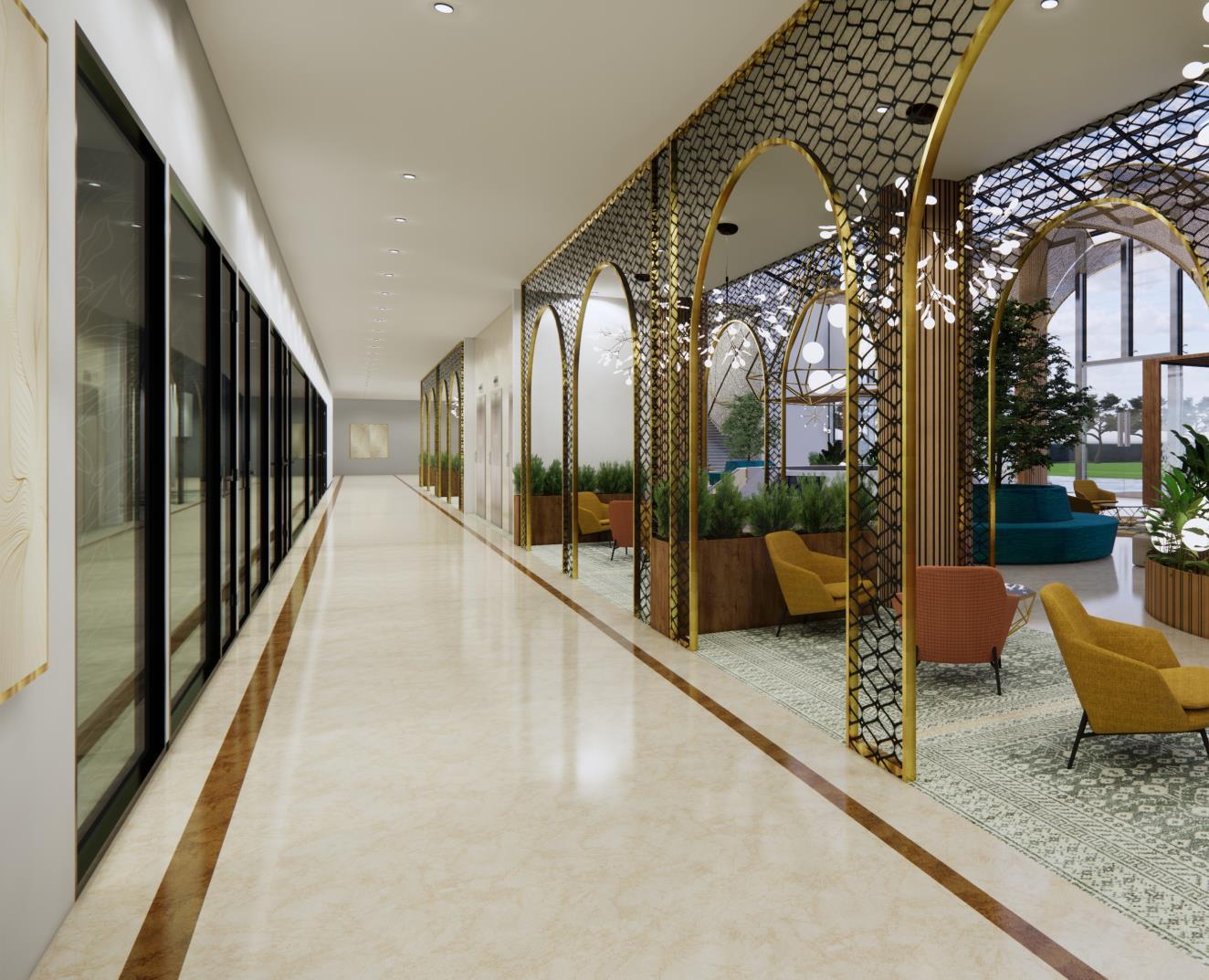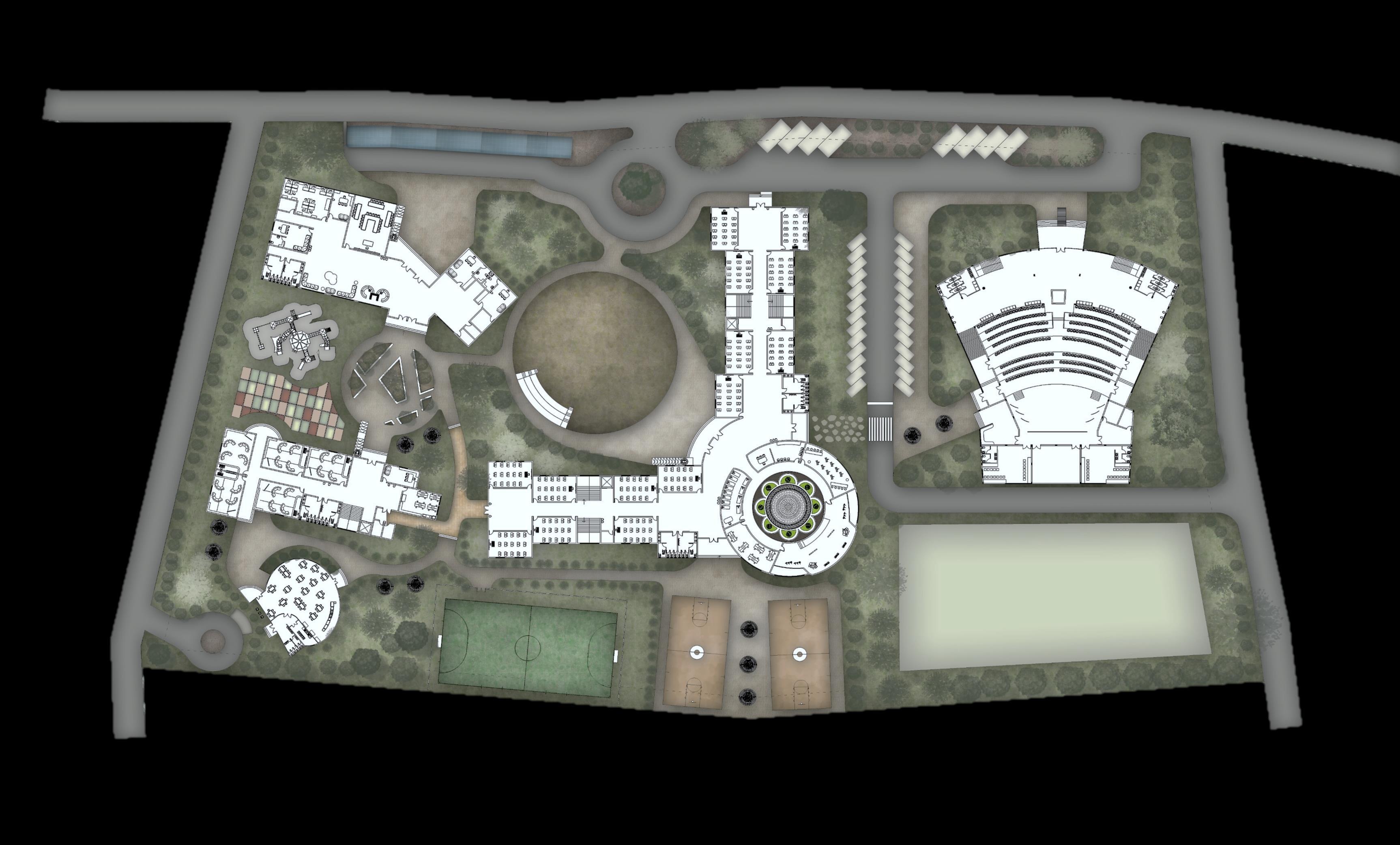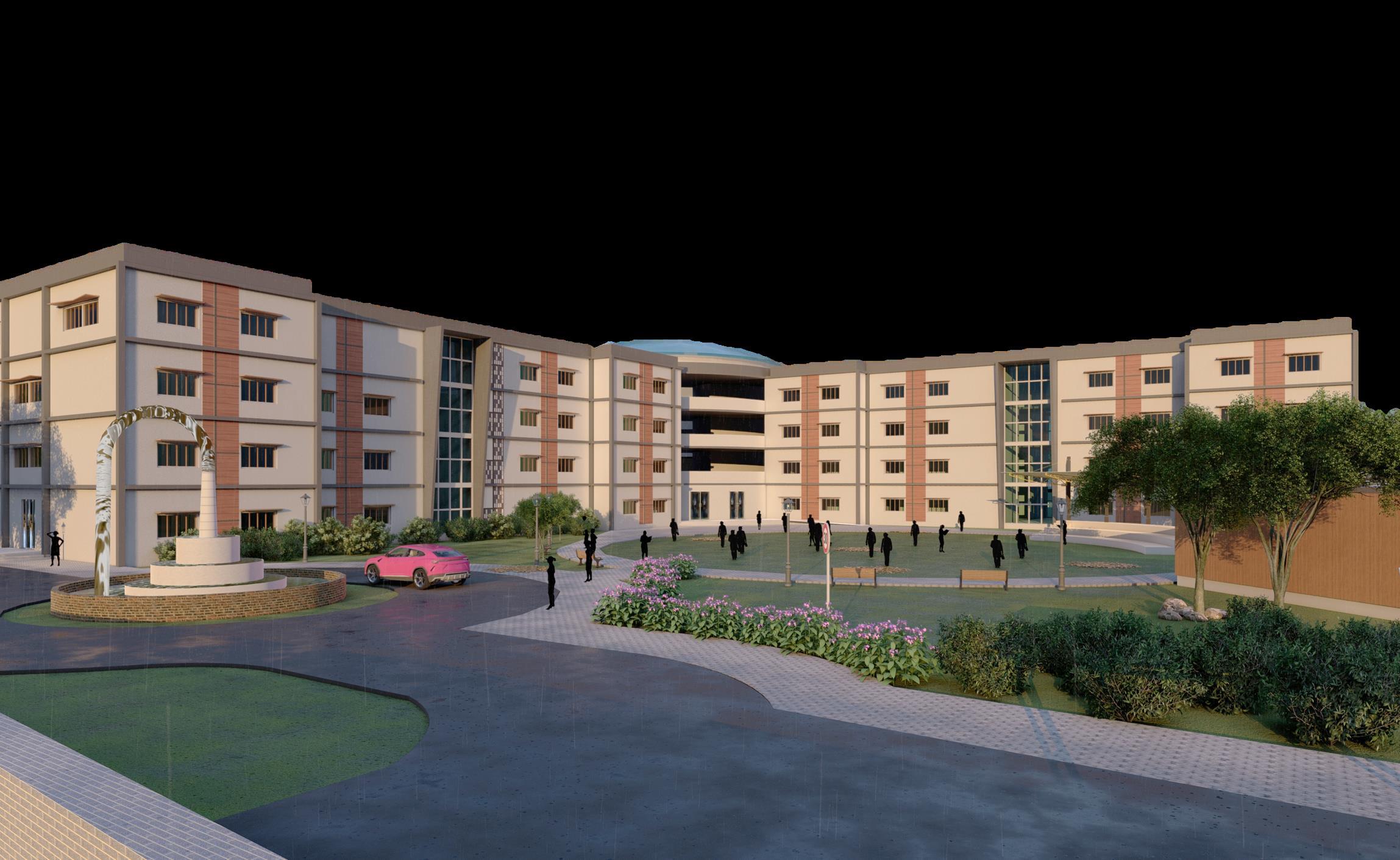 Middle year programmed, diploma programmed, labs, and other common areas make up the main academic block. Classes with a total size of 60 square meters and a total of 30 students are established. The structure contains well -lit hallways, a glass dome, and a curtain wall that runs from top to bottom.