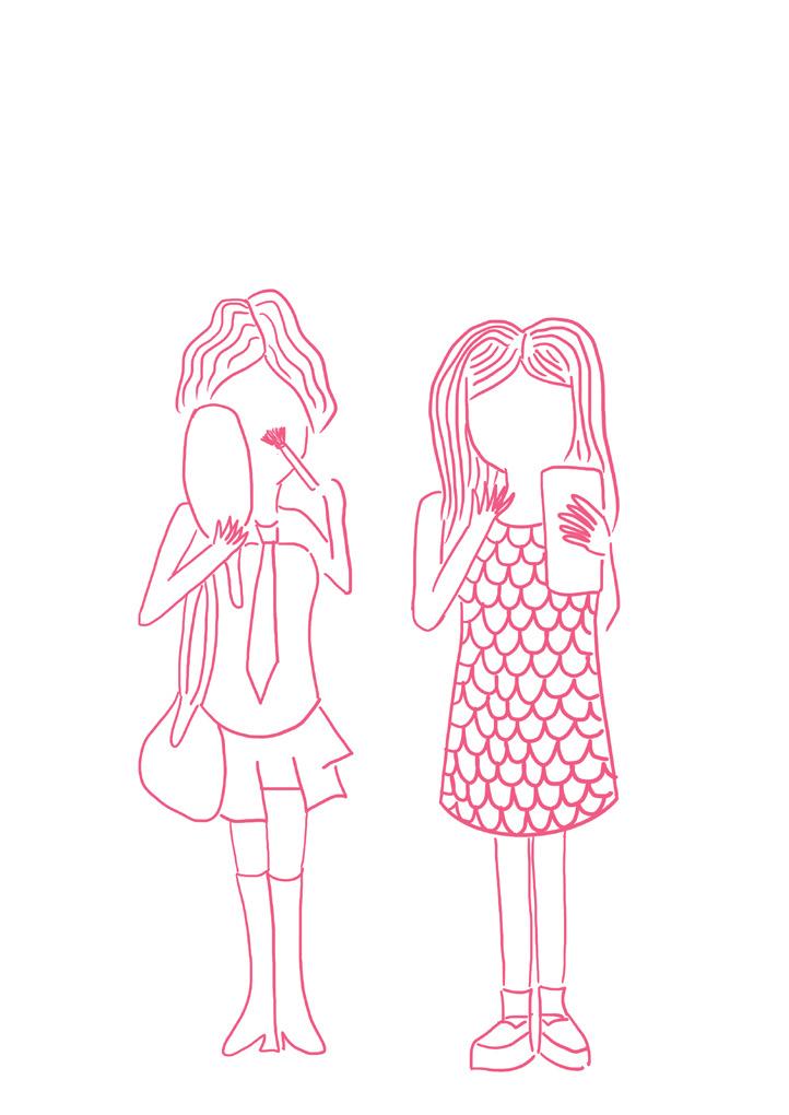 Looking at the phone, judging To represent how social medias can become toxic if we don’t use it properly