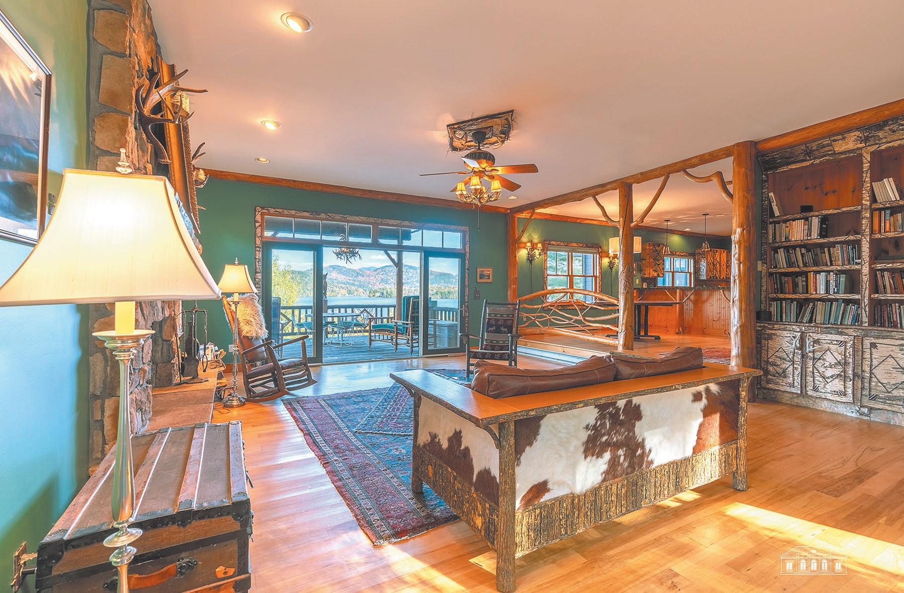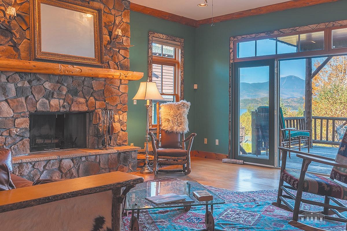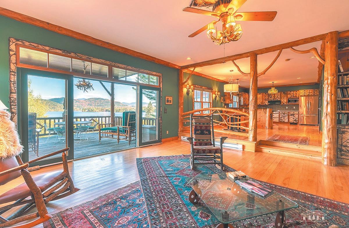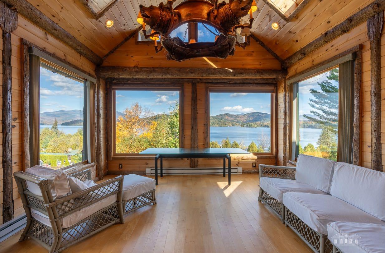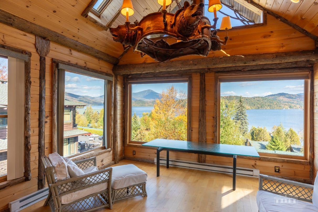 Saranac Lake: Boulderbrook Lodge, 4 BR, 4 BA with panoramic mountain and lake views, deeded lakefront, dock and privacy. Featuring custom finishes, two main floor ensuites, expansive porches and furnished interiors. Trails, boating, future expansion options. $1,995,000