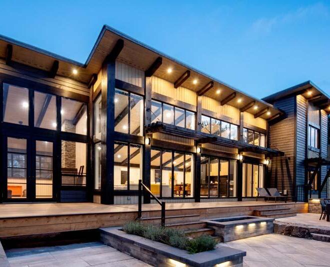 This stunning home blends modern luxury with Adirondack heritage. Built using reclaimed wood from the original home, featuring passive solar design, radiant concrete floors, and sustainable craftsmanship throughout.
