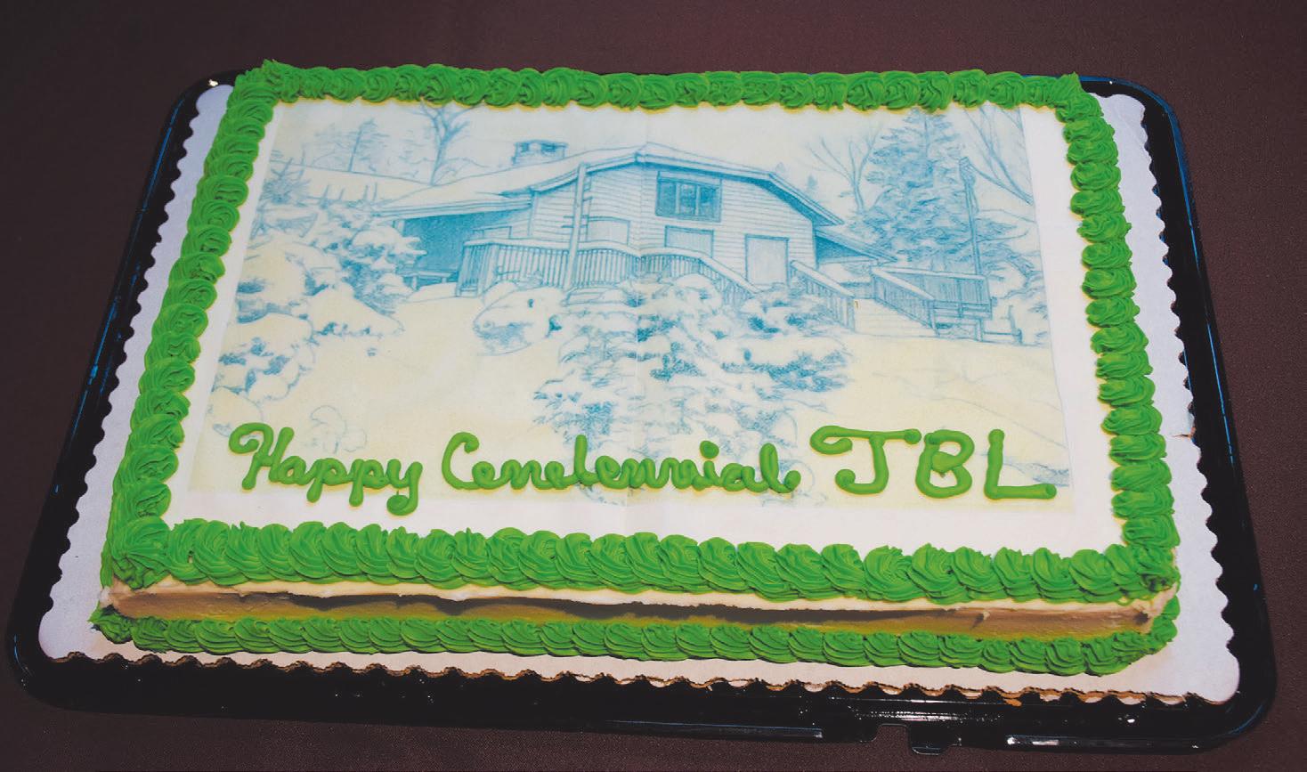 A cake celebrating the Johns Brook Lodge’s centennial is seen at the Adirondak Loj on Oct. 25. (Enterprise photo Chris Gaige)