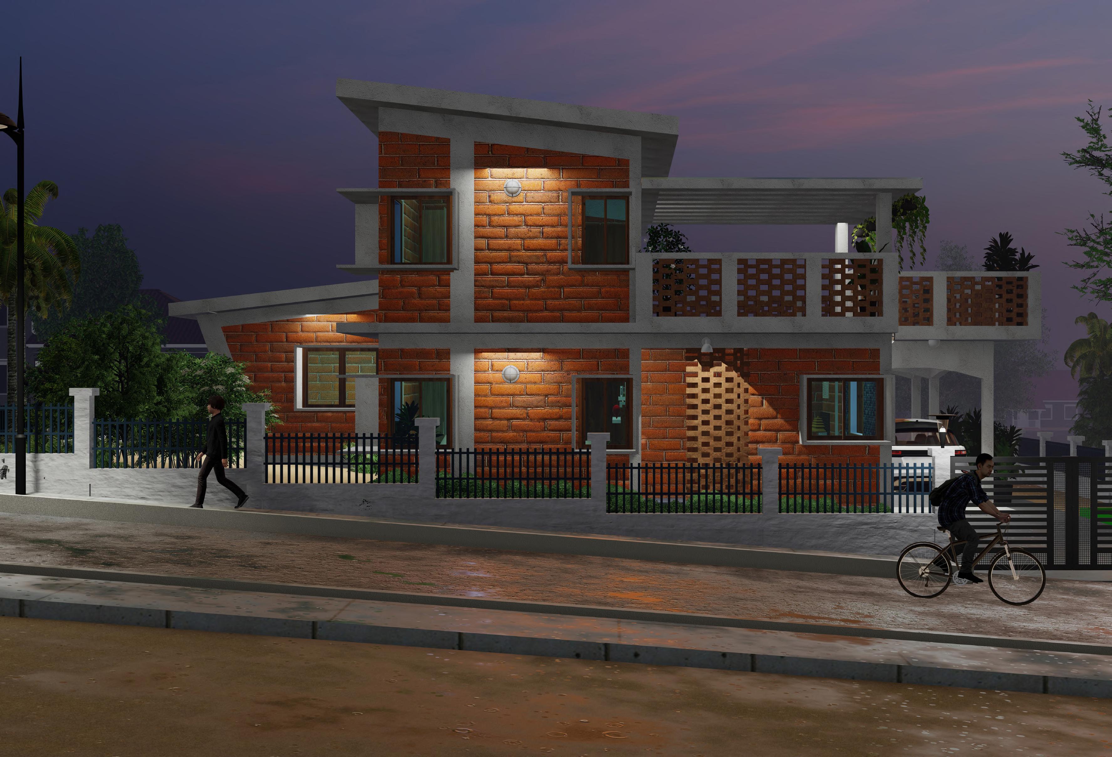 A 3BHK residence designed for an elderly couple who expect a brother to stay along for long and also frequent guests. The client wanted the building to be distinct and be unalike from the neighbouring ones and to follow sustainable approach.