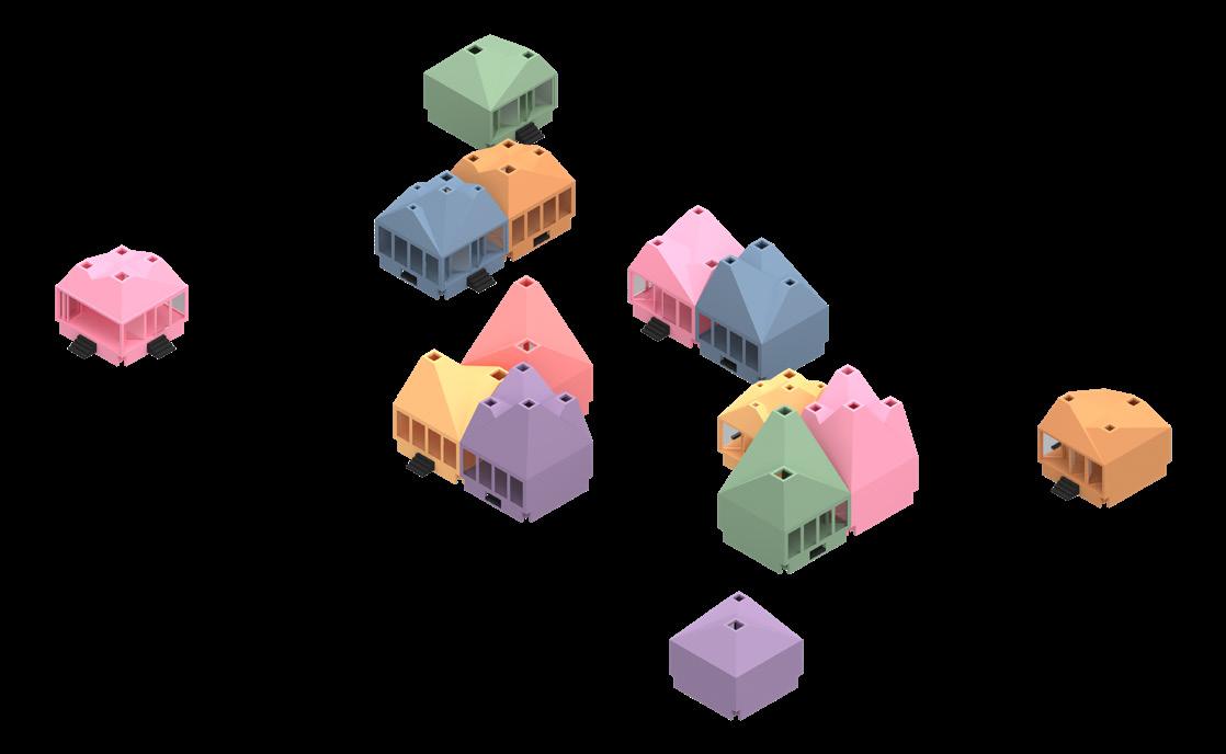 When we were tasked with designing a kinetic system, my teammate and I tested the concept of mobile modular units. Intrigued by the idea of spaces reliant on the passage of time, we directed our efforts towards daycare systems. The final product was a four-piece series of spaces that changed in configuration based on the time of day and usage requirements.
