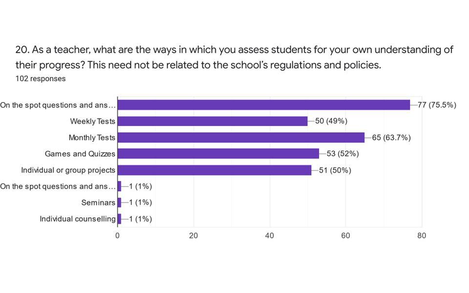 58% of students use online forums to clear doubts and for informal learning 77% of teachers use on-the-spot quizzes to assess their students.