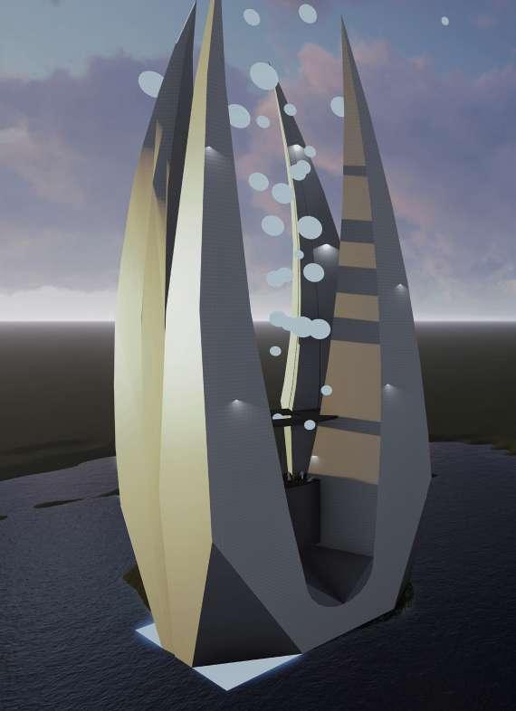 Its cavity releases cosmic dust and light to bid farewell. It’s the release of our energies. Its pointing edges create the sense of end while pointing to the skies. Exclusivity of graves can be found. Another feature is the replenishment of graves as the bodies decompose, the above graves take their place and the coffin is cleaned for a new body that goes back on top, making this building sustainable.