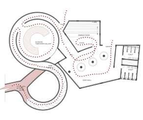1. Entrance Gallery 2. Sound Bar Pavilion 3. Gallery Of Refuge 4. Windows To The Past 5. Seminar And Viseo Wall 6. Temporary Gallery 7. Gallery Of Hope 8. Library 9. Museum Restaurant 10. Museum Store 11. Workshops 12. Auditorium 13. Food Kiosk 14. Oat 15. Ramp To Level 2 16. Parking 17. Vip/Audi Parking 18. Visitor Vehicular Entry 19. Visitor Vehicular Exit 20 -21. Servce/Staff Entry And Exit Ramps Pesetrian Pathways Lawns A -Transformer B- Rainwater Harvesting C- Stp Master Plan Circulation Diagram 2