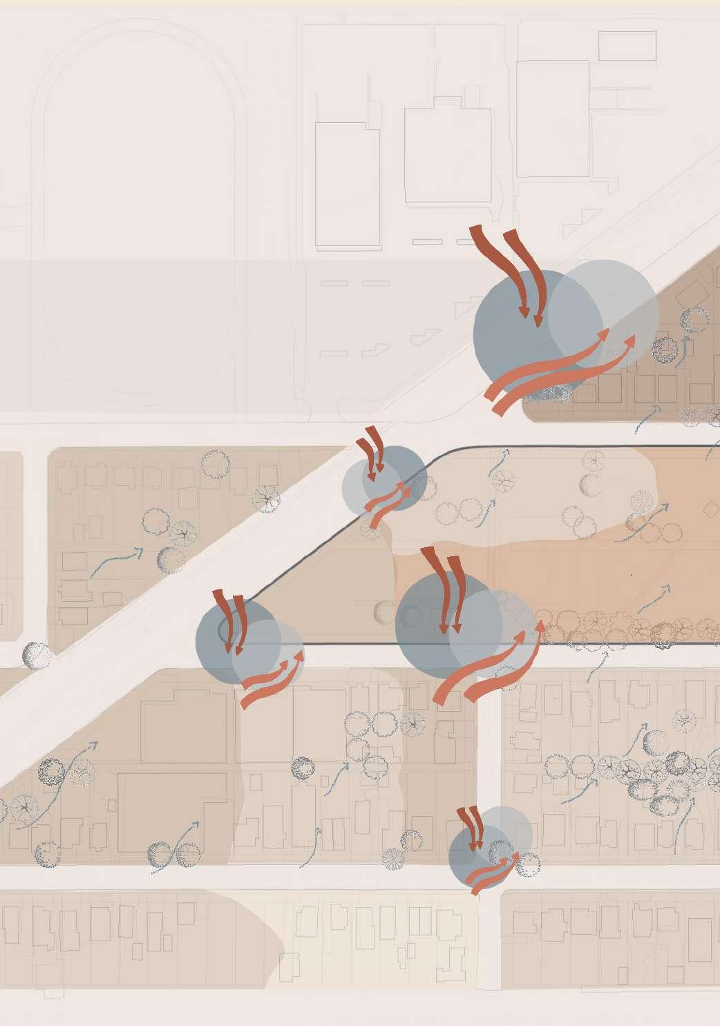 N O’CONNOR PLAYGROUND 1:750 ADITI PATEL ARCH3505 10/27/22 100 80 95 75 85 70 70 70 75 65 65 70 65 65 55 55 WINTER PREVAILING WINDS SUMMER PREVAILING WINDS GENERAL MOVEMENT OF WIND THROUGH THE SITE LEVEL OF SOUND (dB) WHEN WIND SPEED IS 26 Km/h LEVEL OF SOUND (dB) WHEN WIND SPEED IS 13 Km/h OVERALL SOUND LEVELS IN THE AREA HIGHEST ----------------------------------------------- LOWEST SITE ANALYSIS 5