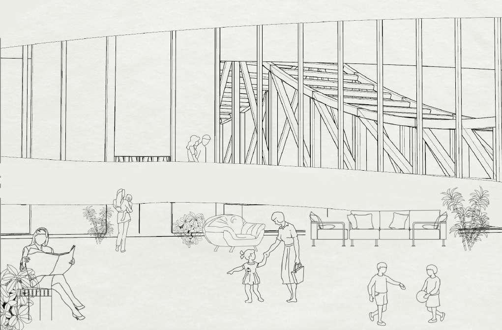 Located in Smooth Rock Falls, this project serves a developing community that seek a civic centre that successfully represents the features of northern landscapes. The design of this proposal emerges from and submerges into the landscape that it sits on. Occupants approach the building at a higher elevation, and then are led down to lake level with a ramp that is directly propotional to the sloping topography.