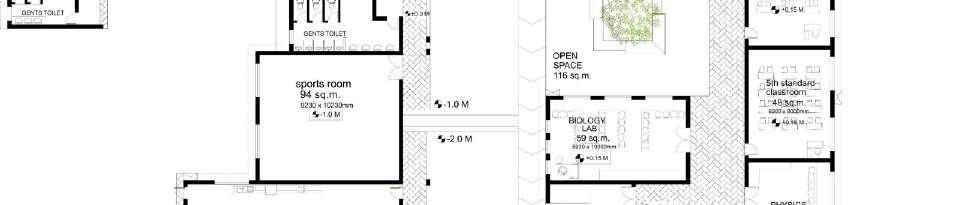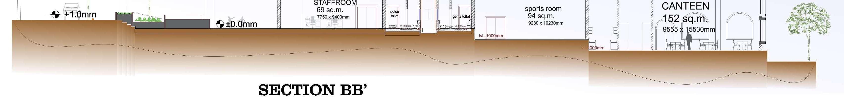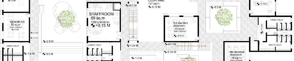 A DOUBLE HEIGHTMEZZANINE CANTEEN IS CARVED OUT VOID CREATING PLAYOF LEVELS.