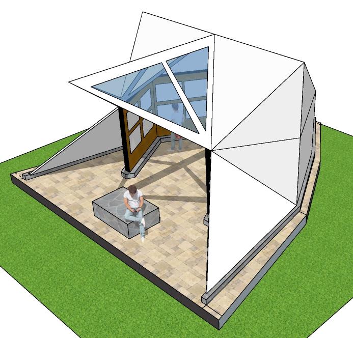 GLASS PANELS ON PROJECTED ROOF BRINGING IN NATURAL LIGHT SET AT PARTICULAR ANGLE