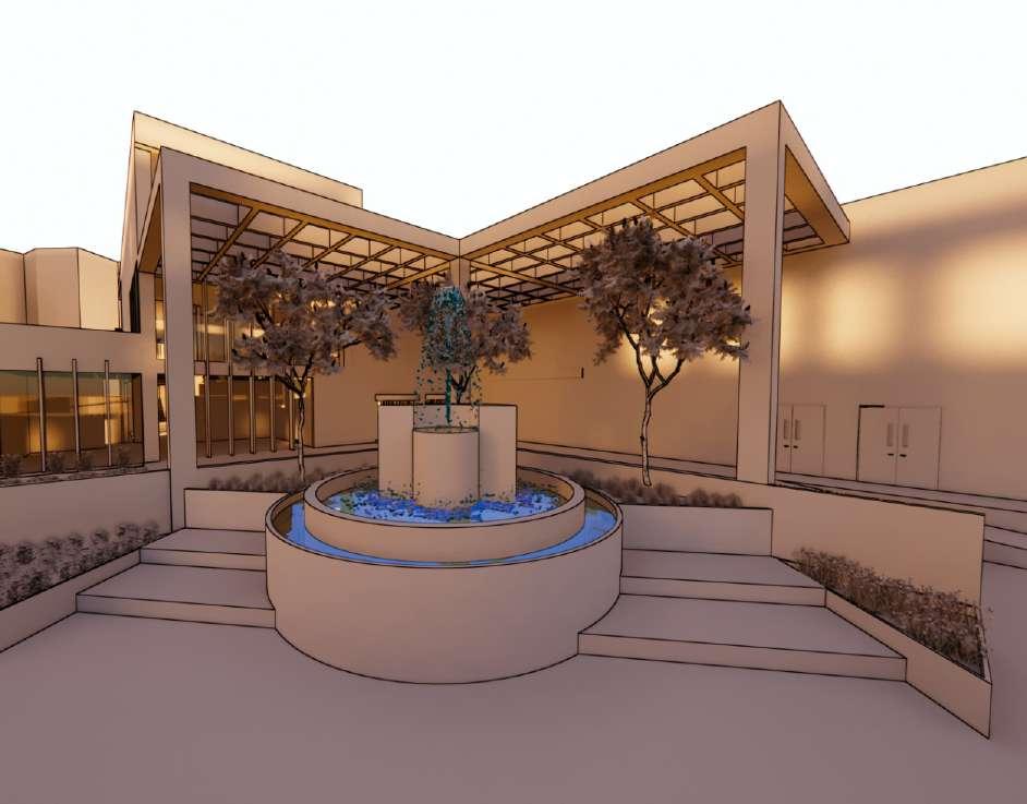 CENTRAL CIRCULATION WITH COURTYARD AND SETTING SPACES INTO AREA PROGRAM
