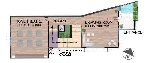IT CREATES A SENSE OF VISUAL DELIGHT GROUND FLOOR CONSIST OF SHOPS WHICH SITS BELOW MEZZANINE SERVICES SUCH AS TOILETS AND UTILITY AND KITCHEN ARE PLACED ON GROUND FLOOR ITSELF NEAR WEST AND SOUTH WEST WITH SMALL OPENINGS