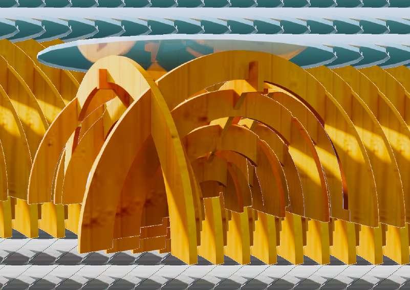 GLASSES PLACED ON PROJECTED ROOF FOR PLAYOF LIGHTINTO POD