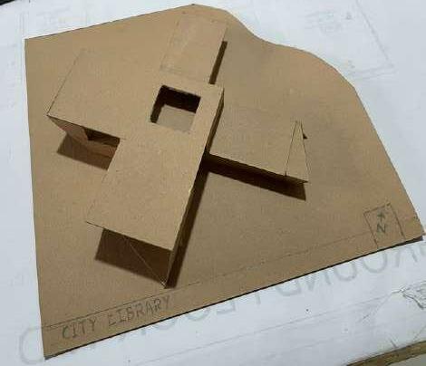 PLANTING TREE ON SOUTH SIDE AND WEST SIDE TO KEEP IT SHADED FROM SUMMER SUN MAXIUMUM SHELVING AREA ON SOUTH AND SOUTH WEST AND CENTRAL READING SPACE LIT BY SKYLIGHT