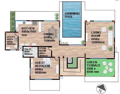 GUEST BEDROOM AND SWIMMING POOL DECK AREA [UPPER GROUND FLOOR]