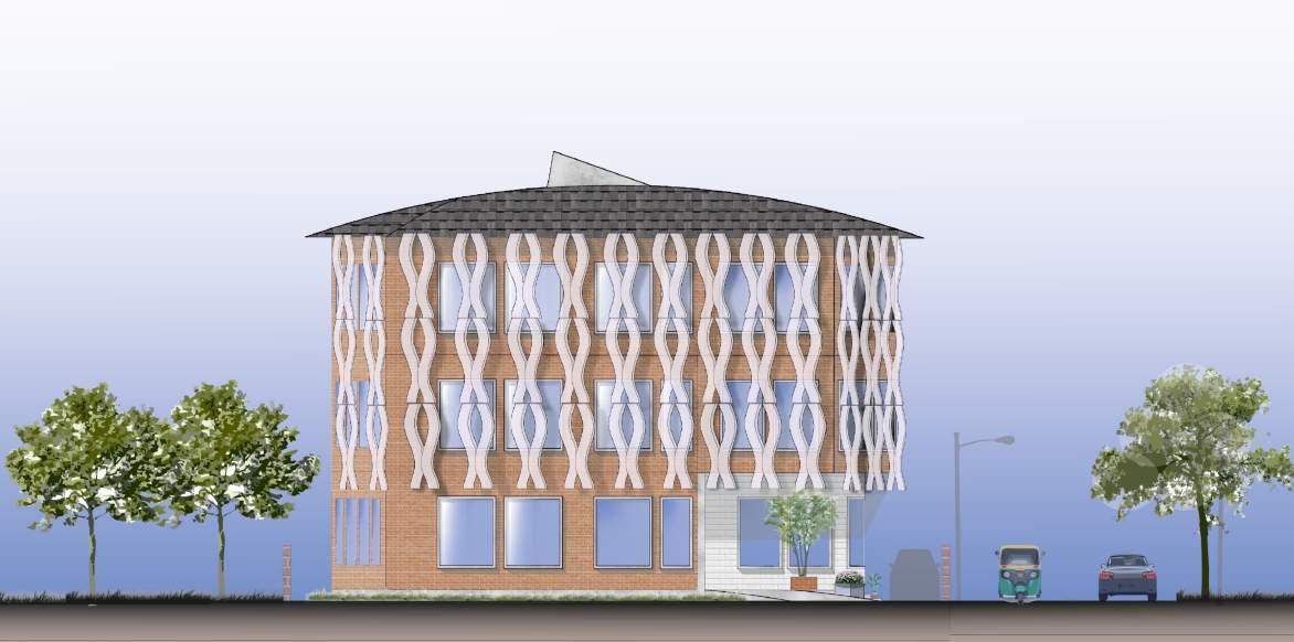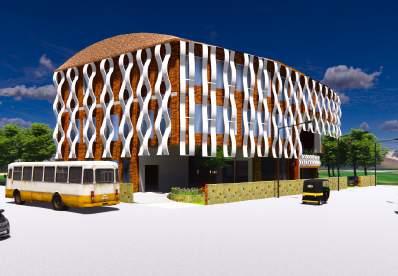 THE FACADE CREATES A WAVE LIKE FORM ON ELEVATIONS