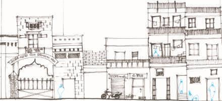 THERE IS AN CENTRAL OPEN SPACE WHICH GIVES FLEXIBLITY FOR COMMUNITY TO INTERACT WITHIN MICROCLIMATE IS CREATED AT BOTH , ENTRANCE AND TOWARDS END , WHICH BECOMES AN INTERCATION POINT HAVING SITTING SPACES AND LANDSCAPE WITH SMALL TREE .