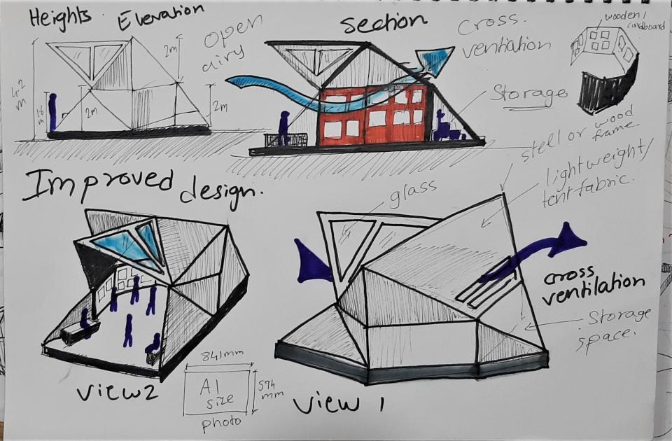 SOME VOIDS ON REAR PORTION FOR CROSS VENTILATION AND ANGLED SURFACE CREATED FOR NOT LETTING RAIN WATER IN