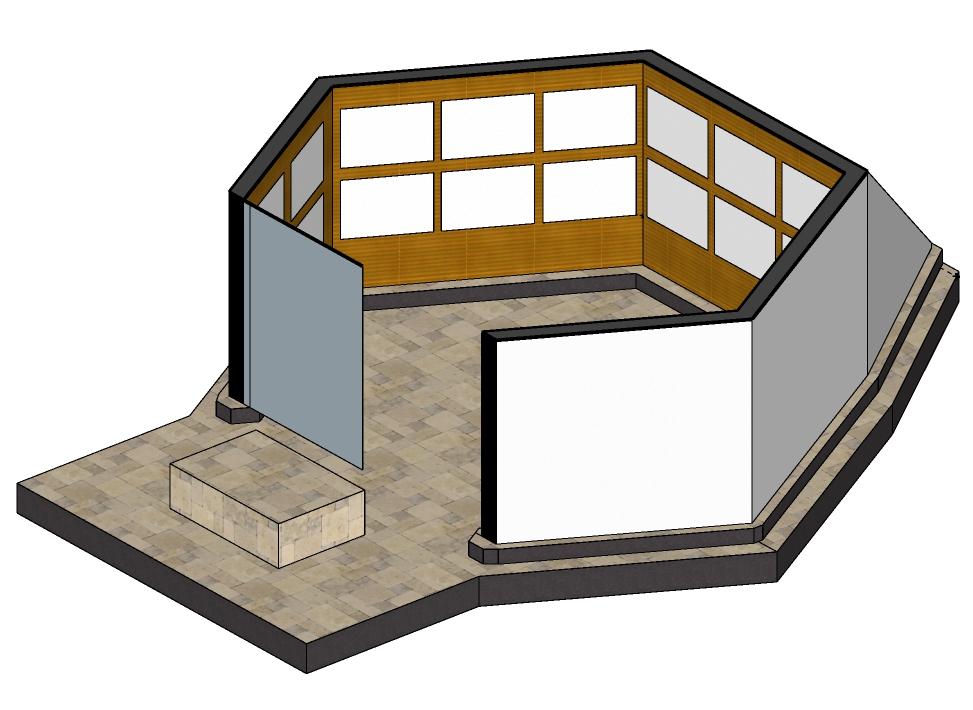 PANEL FOLDING INSIDE WHILE EXHIBITION TIME AND PANEL FOLDS OUTSIDE CREATING A CLOSURE