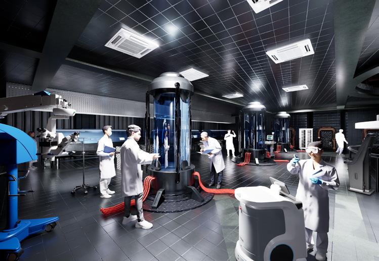 The dry research facility platform focuses on data analysis, technology development, and interdisciplinary research. It houses advanced laboratories for genetic research, climate studies, and marine technology innovation. This platform is equipped with Computational resources, including high performance computing clusters and data storage systems, to support big data analysis and complex simulations. Collaboration spaces, conferences room, and offices are designed to foster interaction among researchers from various disciplines, promoting innovative solutions to marine and environmental challenges.