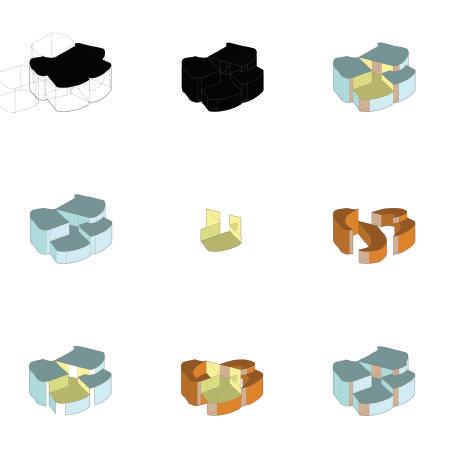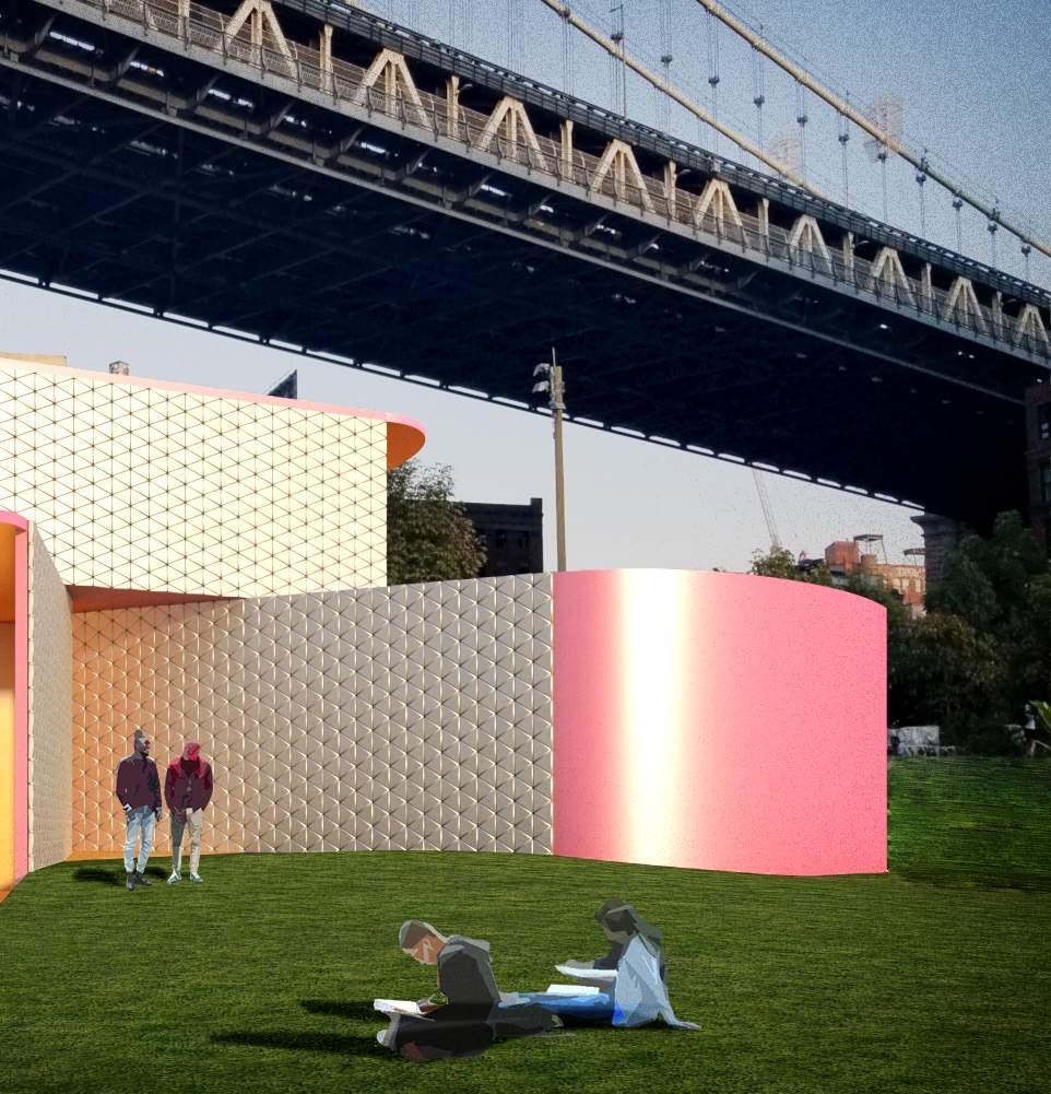 The pavilion focuses on the exploration on the relationship between solid, surface, and carved void. The vibrant contrasting colors of the pavilion distinguished each elements as to create a clear boundaries between each of them. The panelized skins expresses the surface, acting as a gate between the solid and the carved void. The pavilion holds a performance area, gathering and seating area, and observation platform. These programs were given a view of the iconic Brooklyn Bridge and Manhattan Bridge.