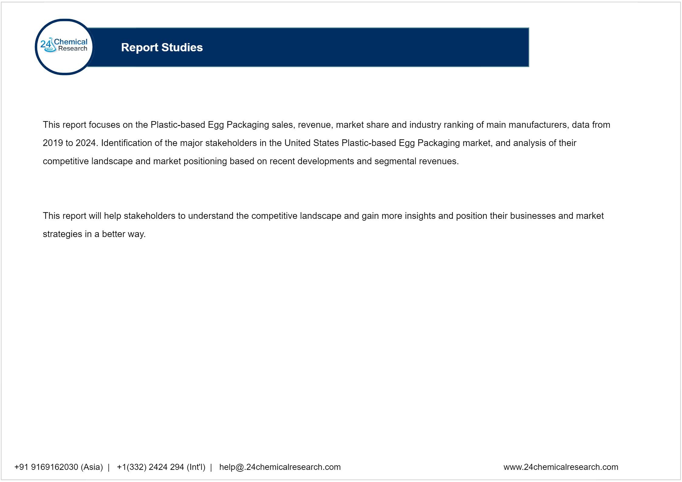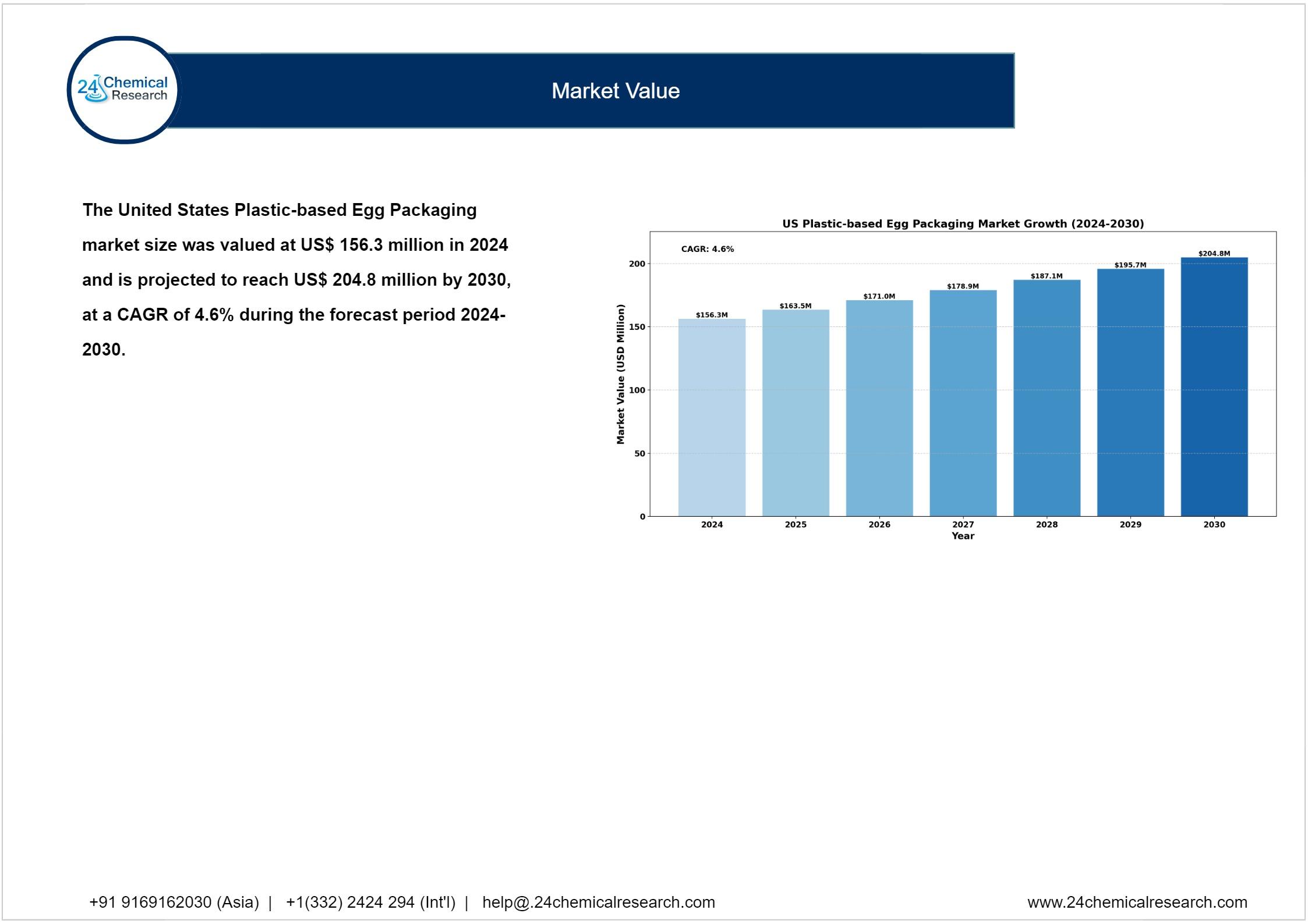 Copy & Paste the link to Download Free Sample Report >> https://www.24chemicalresearch.com/download-sample/279861/united-states-plasticbased-egg-packaging-market-2024-2030-359//The United States Plastic-based Egg Packaging market size was valued at US$ 156.3 million in 2024 and is projected to reach US$ 204.8 million by 2030, at a CAGR of 4.6% during the forecast period 2024-2030.