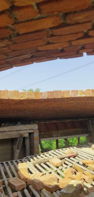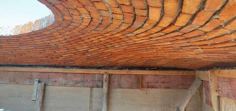 These are flat brick domes that are used as a conventional roofing technique in villages. They are almost flat- so flat that the curve is hardly noticeable. Another attractive feature of this construction technique is that it uses no shuttering and is hence simple and highly economical albeit depending heavily on knowledge, intuition and skill.Ordinary bricks are used. A rich cement mortar of 1:2.5 or 1:3 is used and the bricks are used dry to ensure better initial adhesion (considering that there is no shuttering used).