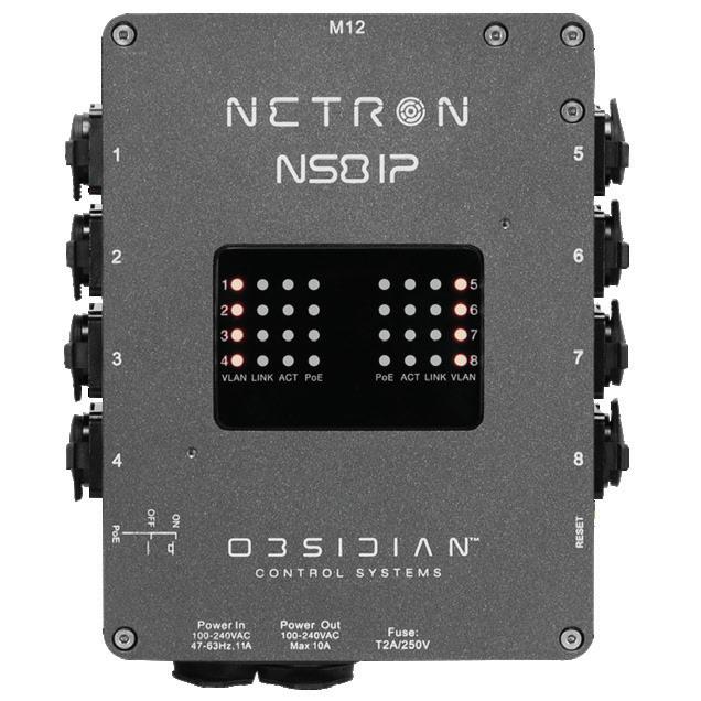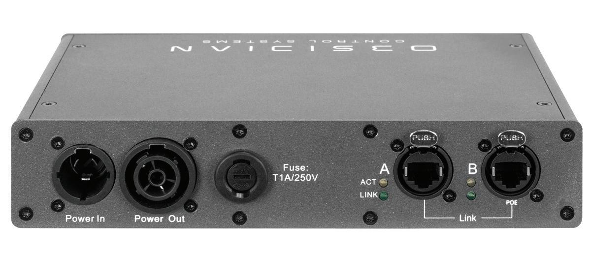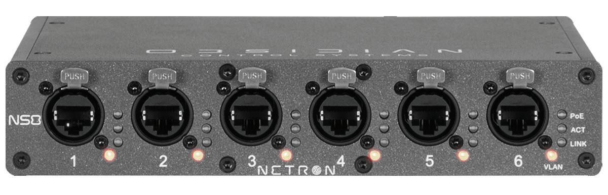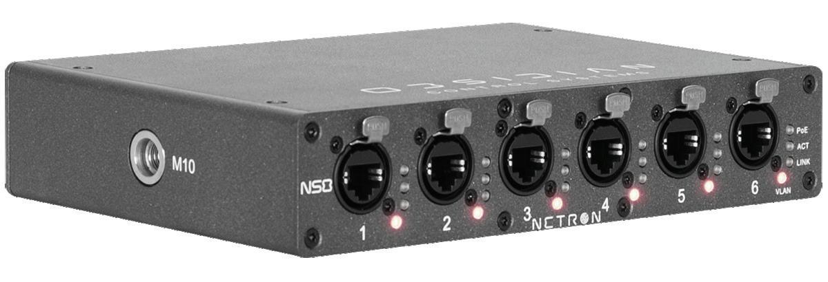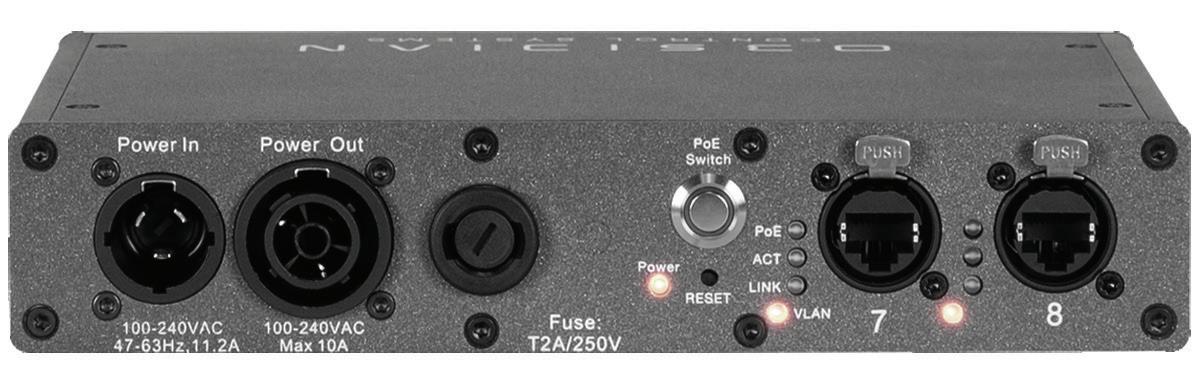 The NETRON NS8 is a compact network switch featuring 8 Gigabit ports and PoE+ support. With a total power budget of 100W the NS8 is ideally suited to distribute data and power to NETRON nodes or any other PoE compatible network appliance. Highly optimized for processing the high data volume found in today’s ever-growing lighting systems, the NETRON NS8 distributes a variety of entertainment protocols without delay, ensuring instant reaction times and flawless execution.