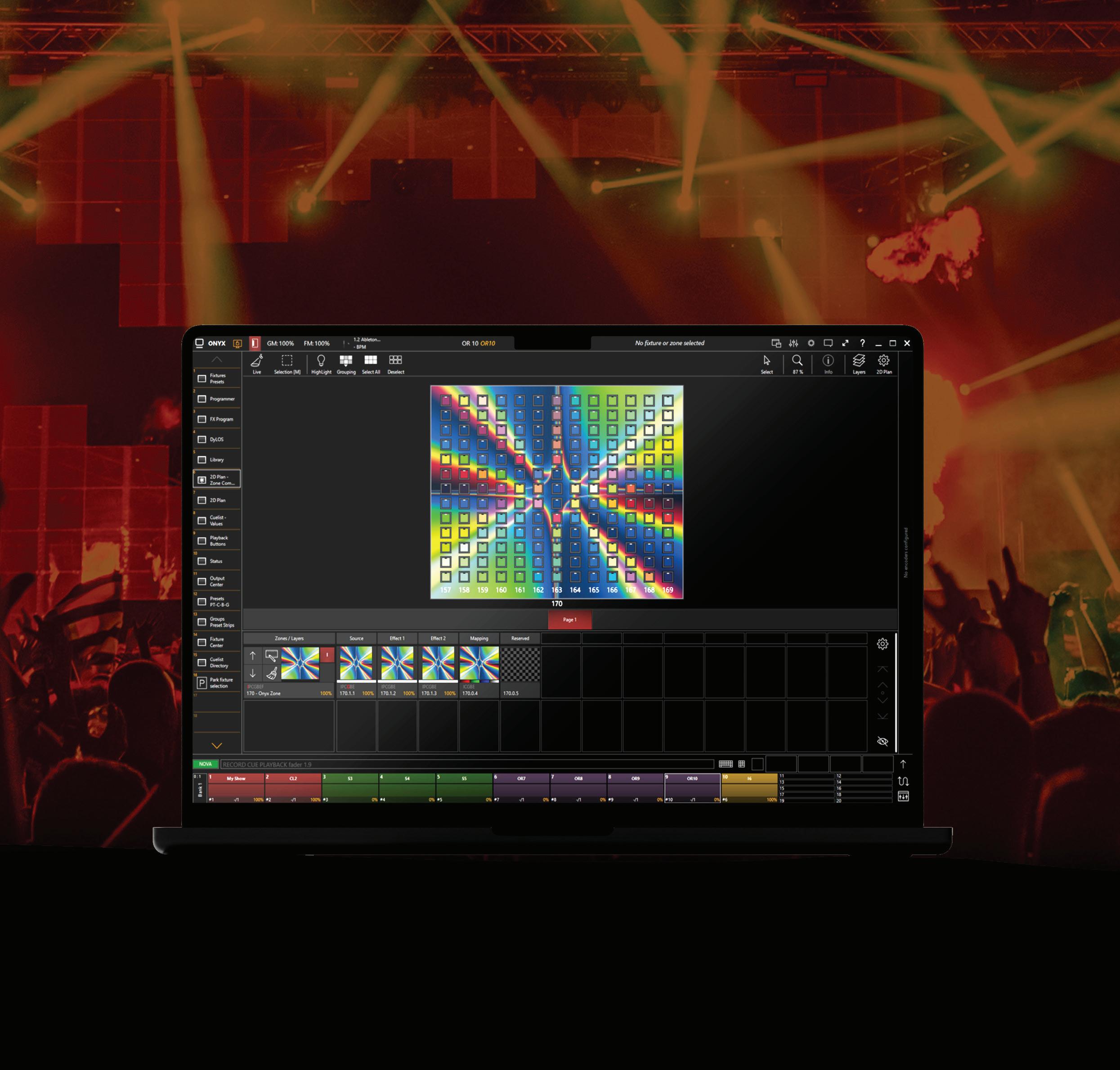 The advanced pixel composer and media engine powering ONYX. Create the most powerful FX with remarkable ease. Access hundreds of variations of any media file or effect. DYLOS gives the operator a full media engine without limitations. Fully integrated in the workflow of ONYX. DYLOS truly breaks new ground in combining a traditional lighting console with an advanced media engine in a totally integrated system.