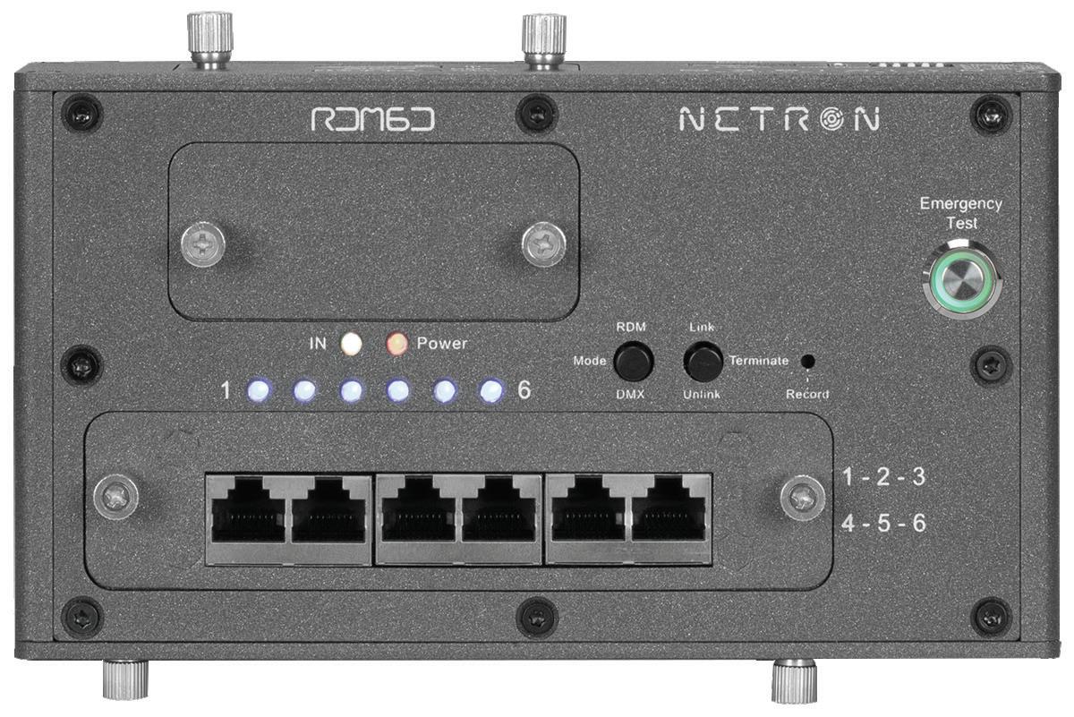 The NETRON RDM6D is 6-port RDM Splitter in a smart form factor optimized for system integrators and fixed installations. It features a rugged chassis and interchangeable connection plates for ultimate performance and flexibility. It can be DINRail or wall mounted and provides Terminal, IDC (Insulation Displacement Connector) and RJ45 DMX options all included. Data ports can be repositioned to the top, bottom or front of the device, accommodating various wiring and mounting requirements.
