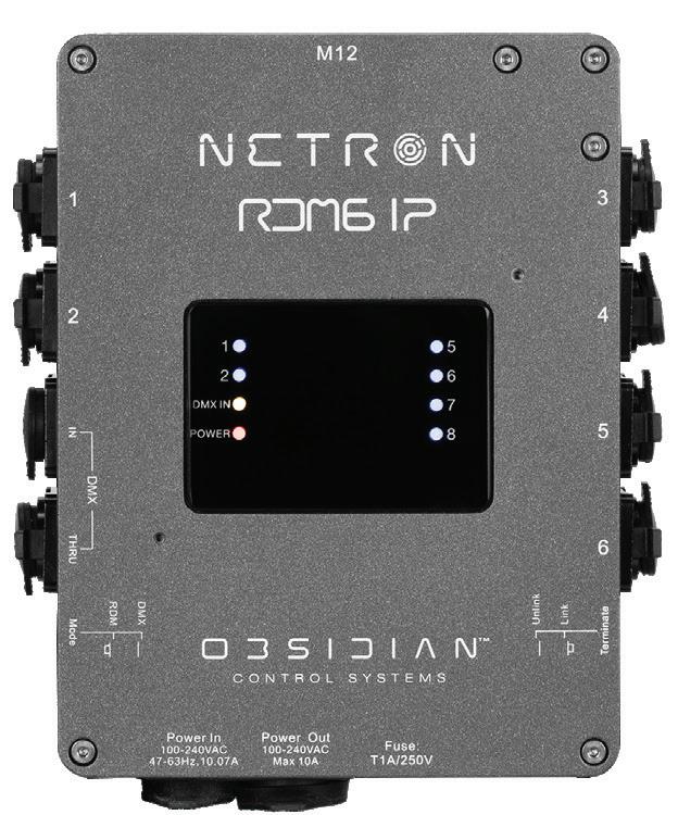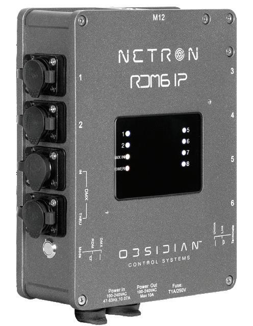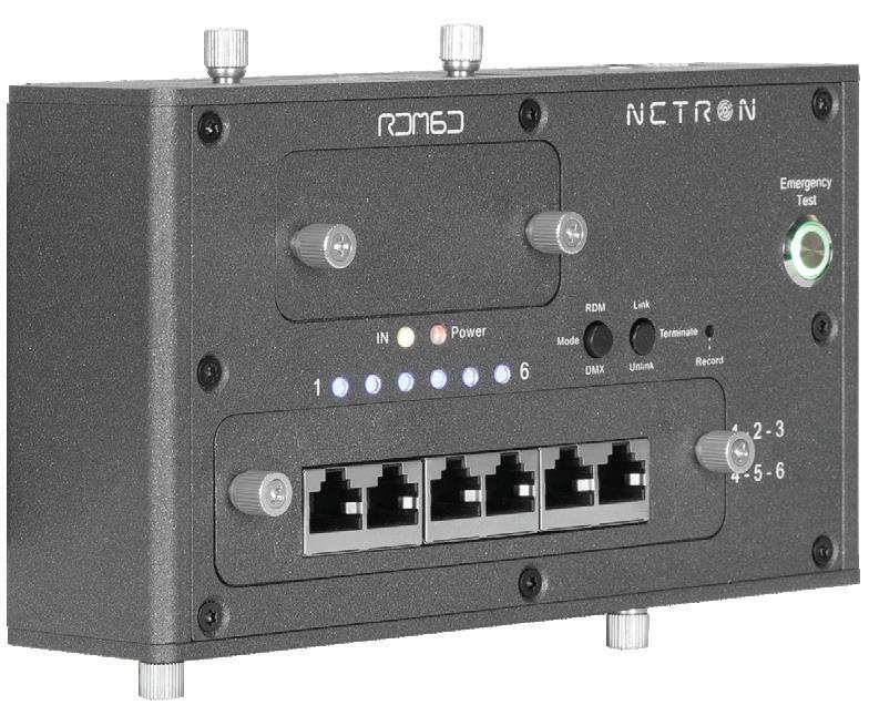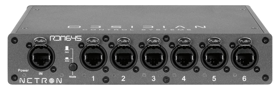– (6) locking RJ45 Ethernet DMX outputs (RDM645) – DMX and RDM compliant