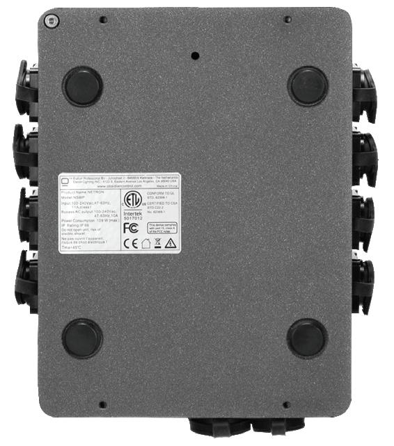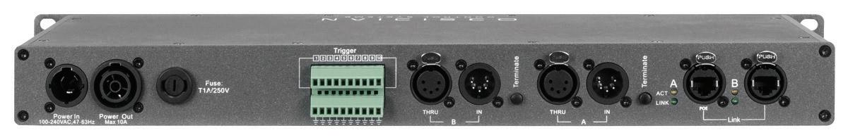 – Locking RJ45 Ethernet DMX Input – (6) Locking RJ45 Ethernet Opto-Isolated DMX Outputs