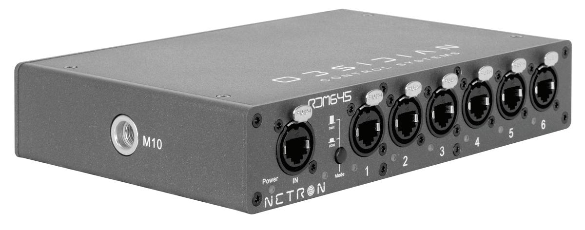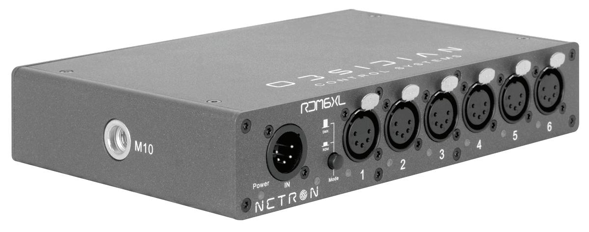 The NETRON RDM6XL and NETRON RDM645 are rugged and compact DMX/RDM Splitters. Designed for live production and installations, feature six opto-isolated 5pin XLR outputs (RDM6XL) or six locking opto-isolated RJ45 DMX outputs (RDM645) and flexible mounting options to cover any situation.
